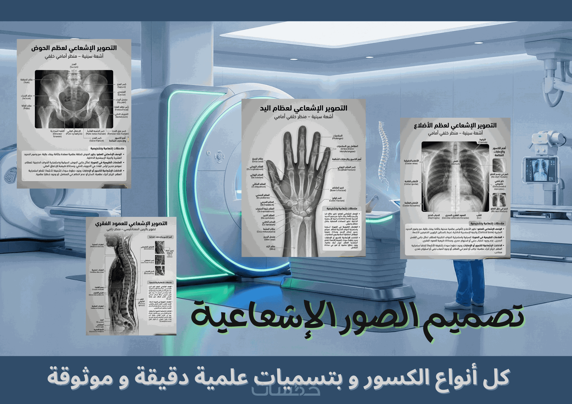 محتوى علمي عالي الدقة للتصوير الإشعاعي الطبي، يضم كل أنواع الكسور