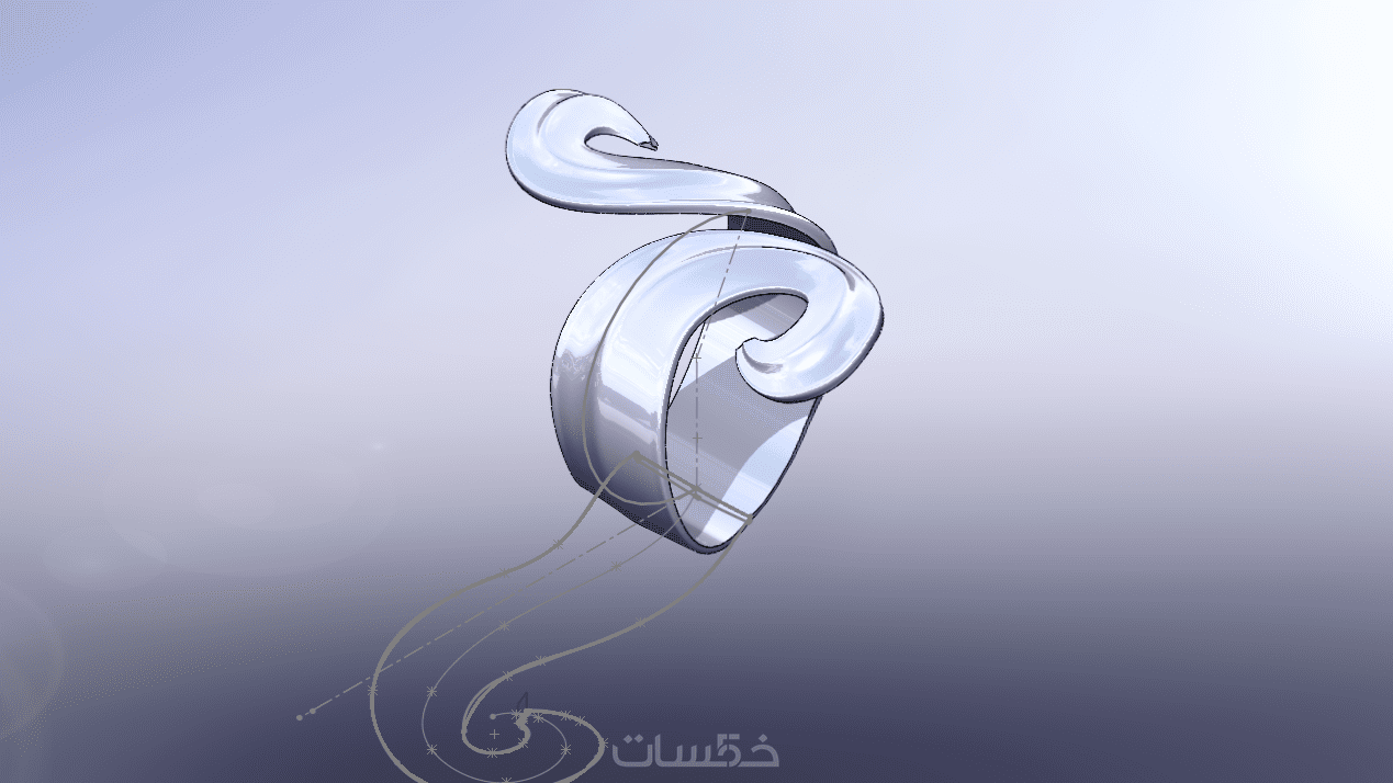 التصميم يعتمد على أشكال منحنية متداخلة تشبه الشريط المعدني الملتف بانسيابية، مما يمنحه طابعًا ديناميكيًا وحركة مستمرة.
