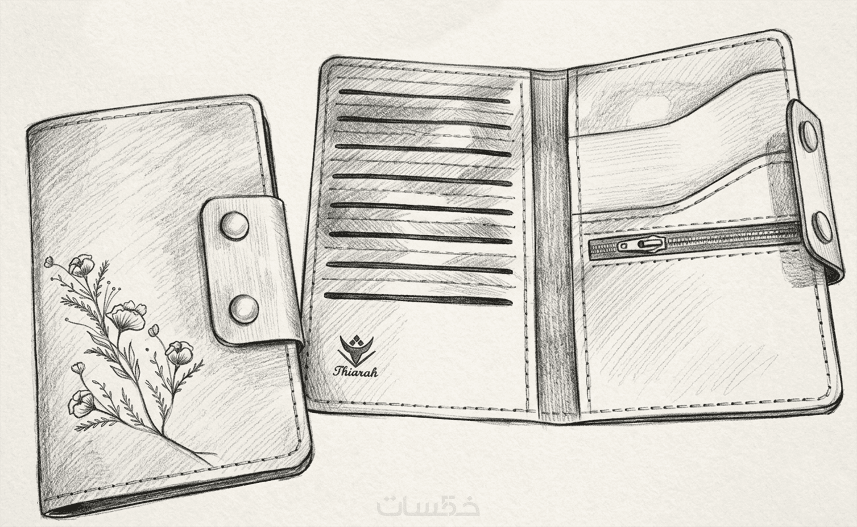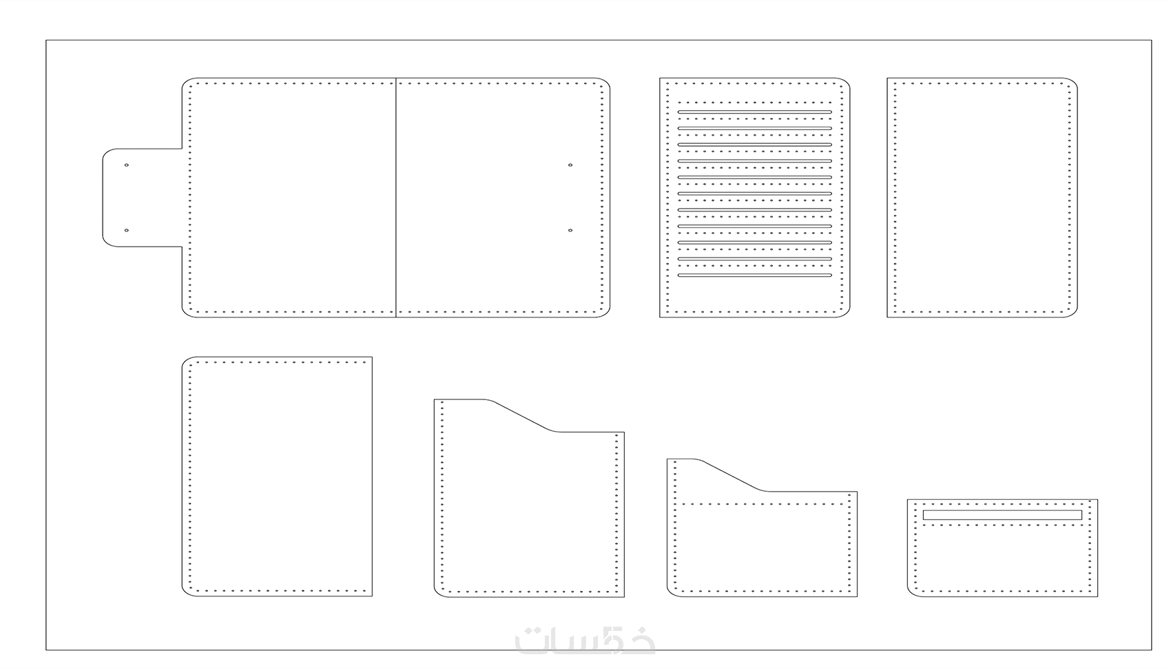 الخدمة الاساسية تشمل باترون واحد لمحفظة شاملة جميع الاجزاء و لا تشمل اضافة رسم فتحات التخريم الخاص بالخياطة على القطع حيث انها بتكلفة اضافية يمكن اضافتها من تطويرات الخدمة.