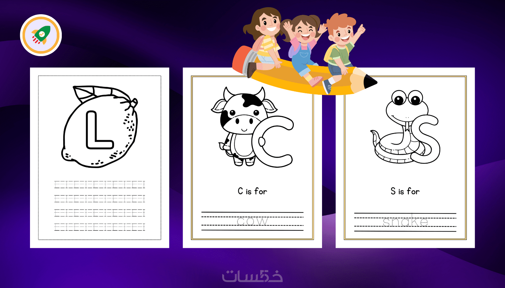تصميم كتاب للأطفال لتعليم الكتابة والرسم والتلوين
