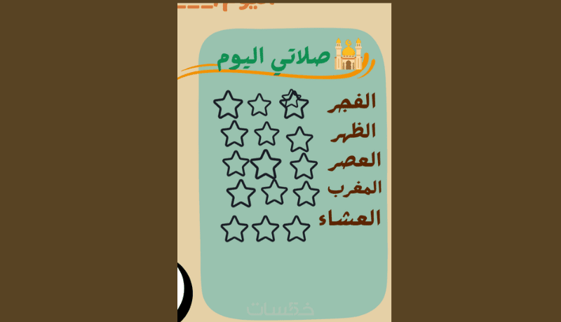 تصميم يومي ملون يشمل: تتبع الصلوات، الأعمال الخيرية، الأنشطة اليومية
