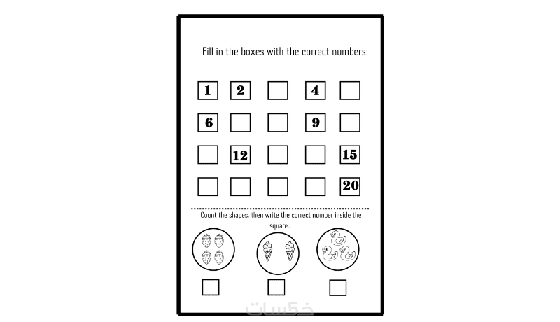 ملف PDF كامل يضم الأرقام من 1 إلى 20.