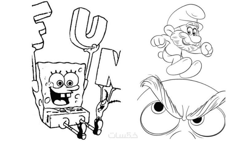 18 صفحة رسومات أبيض وأسود جاهزة للتلوين