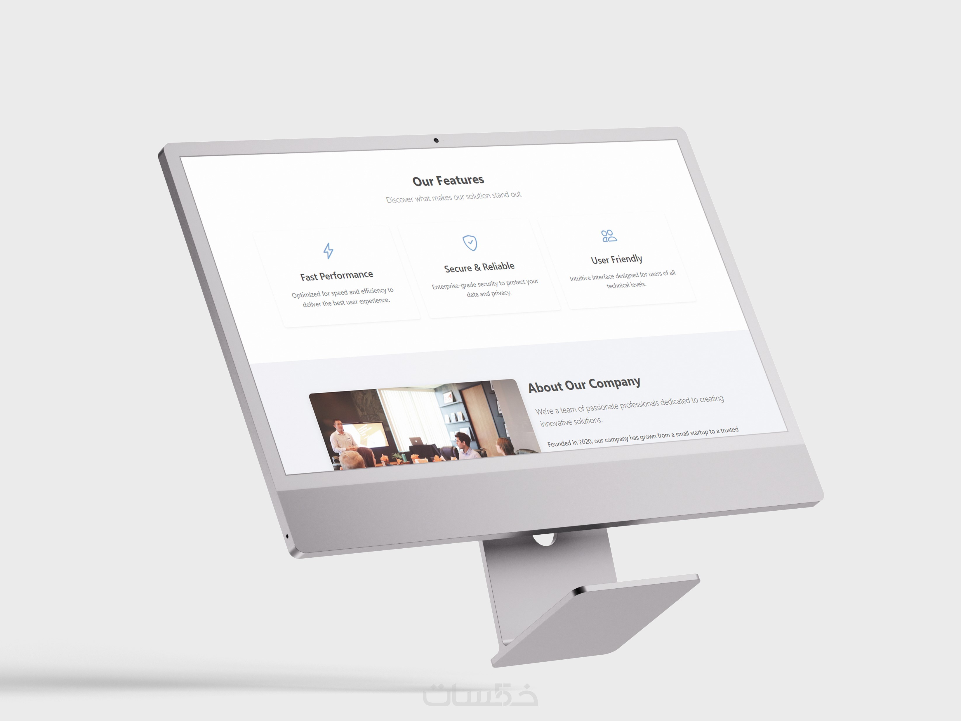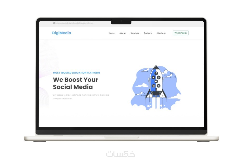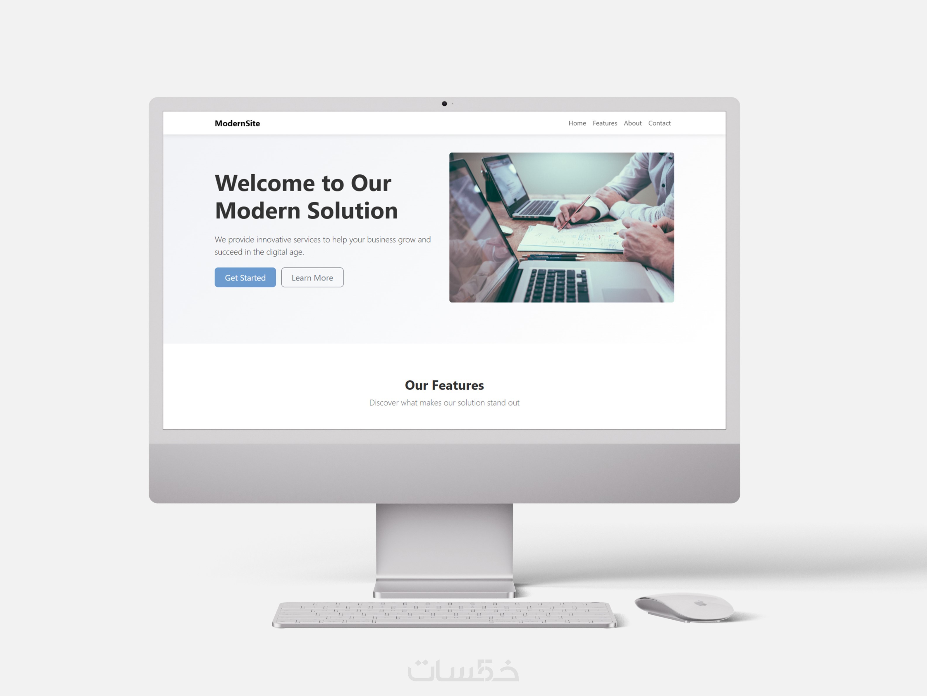 الأقسام الرئيسية (التعريف بالخدمة، المزايا، نموذج الاتصال).