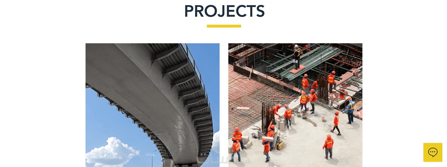 أقسام أساسية: الصفحة الرئيسية، من نحن، الخدمات، المشاريع، تواصل معنا