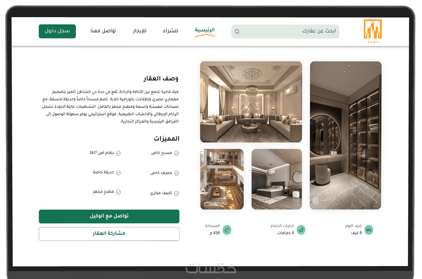صور نهائية للتصميم بدقة عالية تصلح للعرض في العروض التقديمية أو مع العملاء.