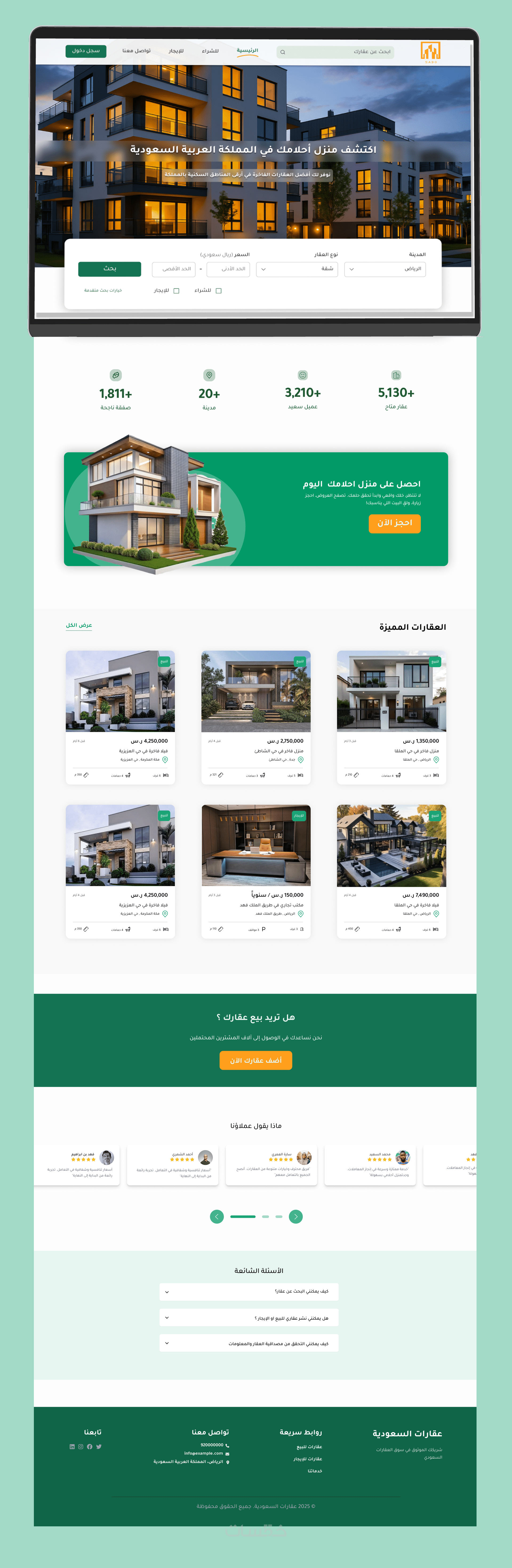 تصميم احترافي لصفحة هبوط متكاملة منظمة إلى أقسام واضحة (مقدمة – مميزات – دعوة للإجراء – آراء العملاء... إلخ) جاهزة للعرض أو التطوير.