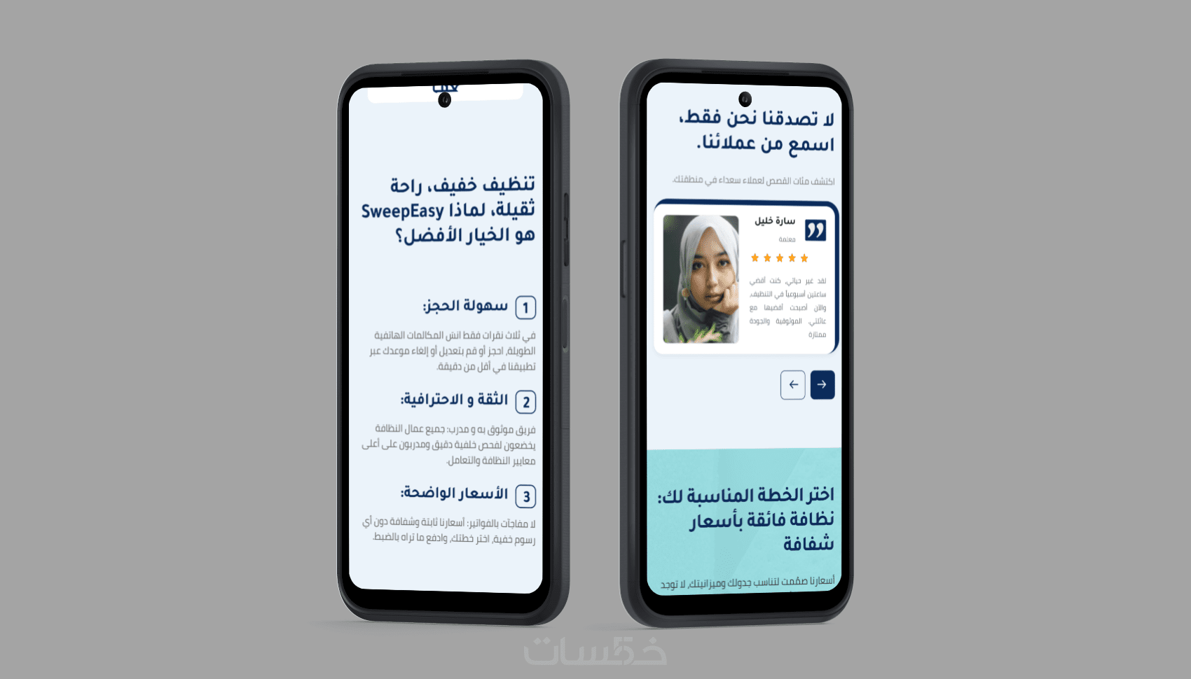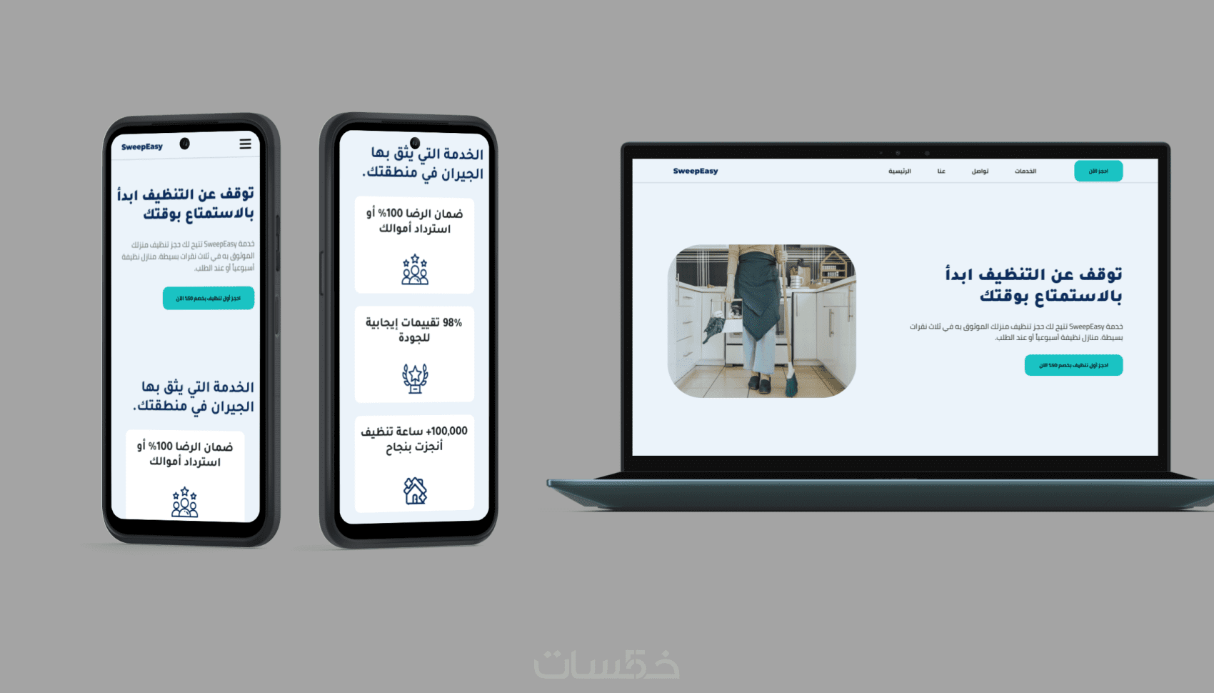 تنسيق احترافي: اختيار ألوان وخطوط تتناسب مع هوية مشروعك (مثل نموذج SweepEasy في معرض أعمالي).