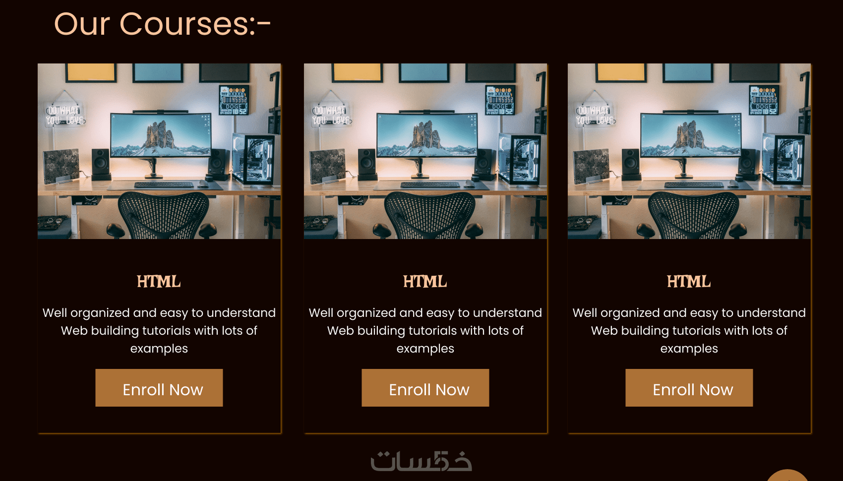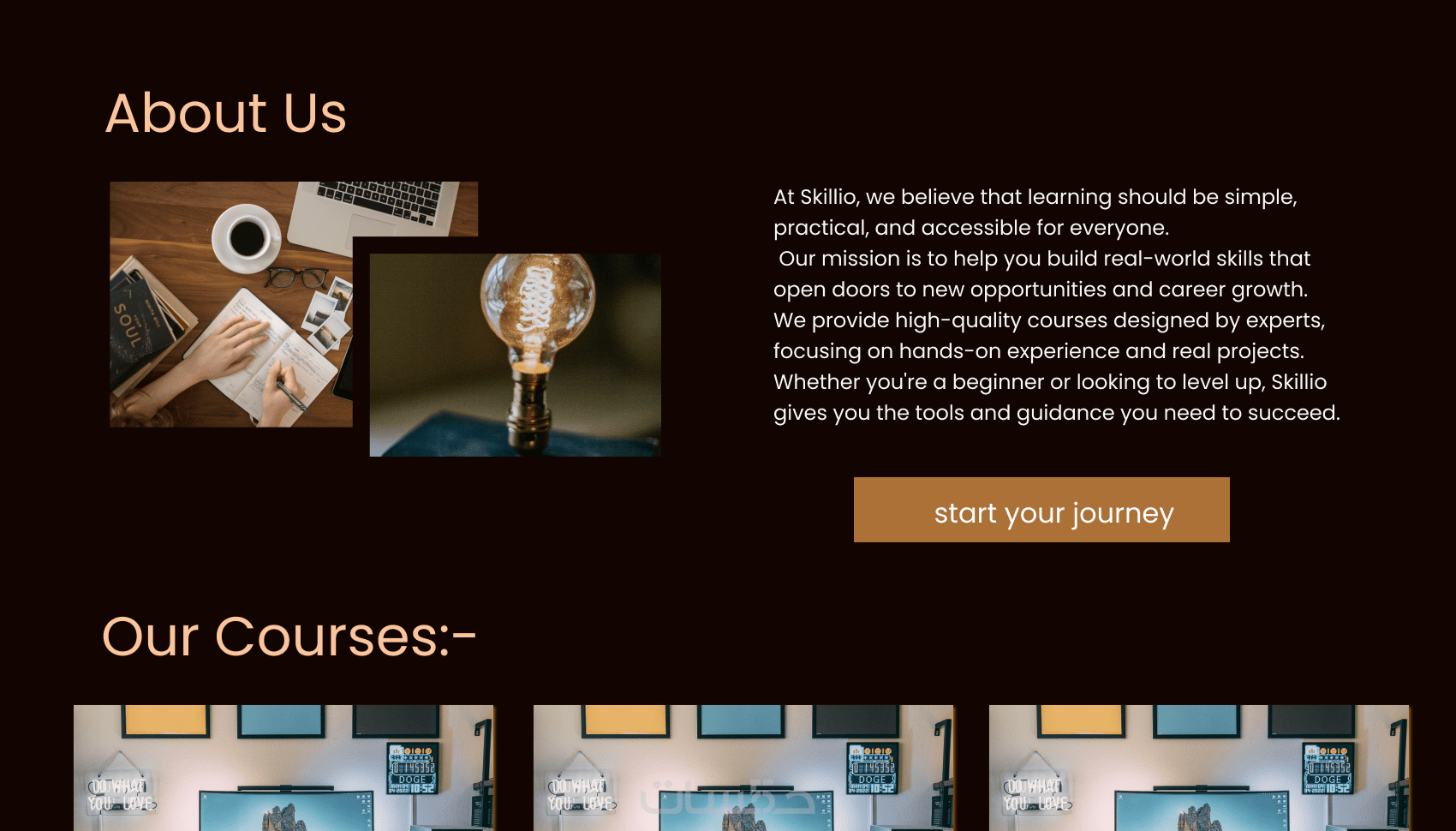 تنظيم احترافي للأقسام (Hero – About – Courses – Contact)
