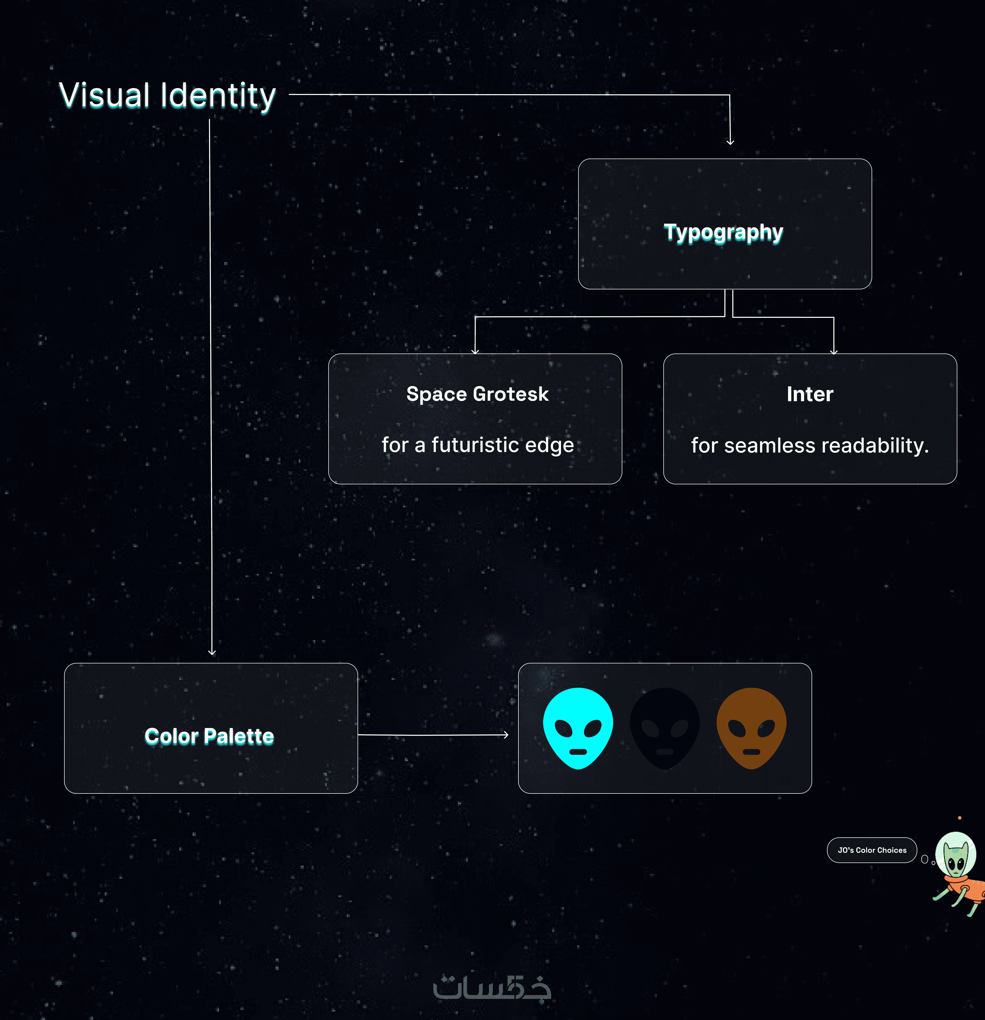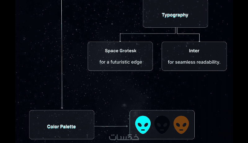 الهوية البصرية: اختيار خطوط وأيقونات تتناسب مع ثيم الفضاء، مع التركيز على التسلسل الهرمي البصري (Visual Hierarchy) لجذب عين المستخدم للعناصر الأهم.