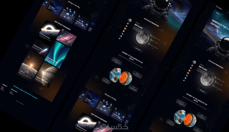 تصميم صفحة هبوط لتبسيط علوم الفضاء واستكشاف طبقات الأرض بأسلوب سينمائي حديث
