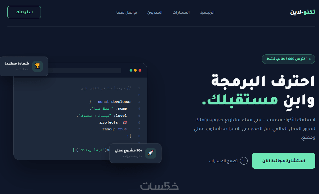 كتابة الكود باستخدام HTML و CSS و JavaScript و/أو Tailwind بشكل احترافي يسهل التعديل والتطوير لاحقًا.