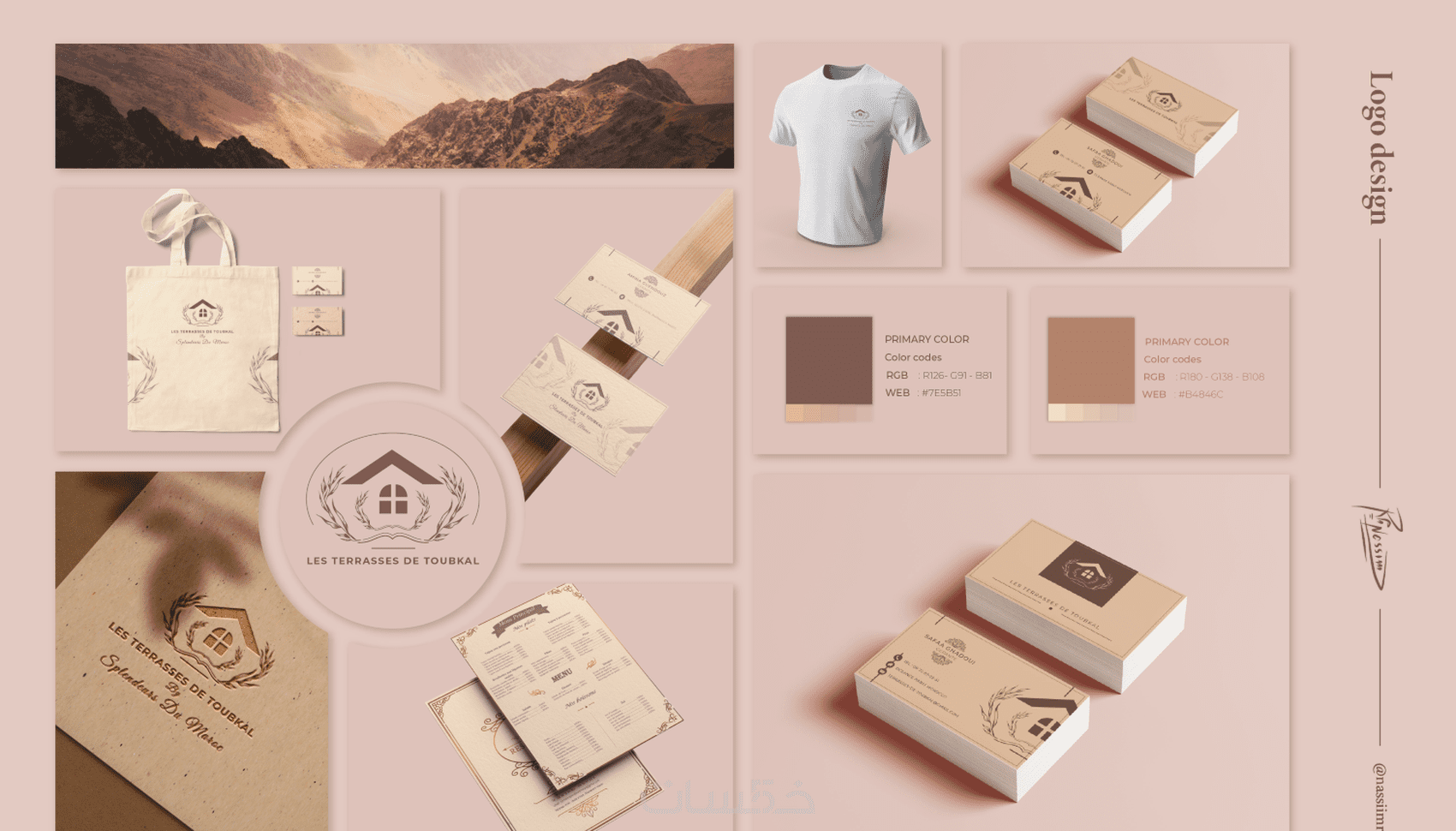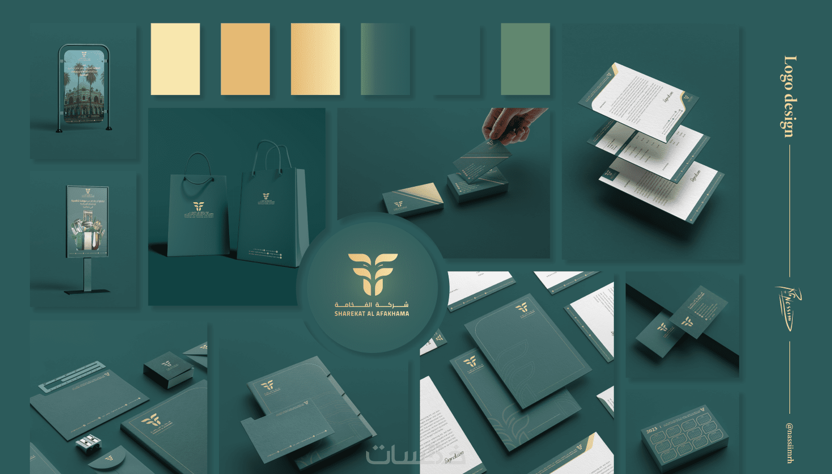 الهوية البصرية للشعار تحتوي : تصاميم الملحقات، و الاستخراج الفني للموك أب، ودليل الهوية البصرية
