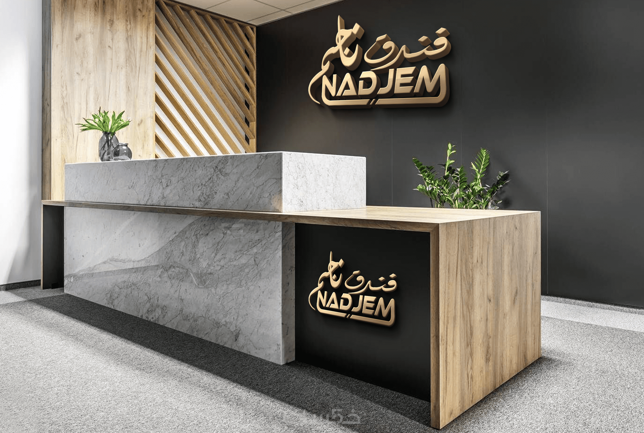 - 1 موك اب (mockup) يوضح مظهر الشعار على الطبيعة.
