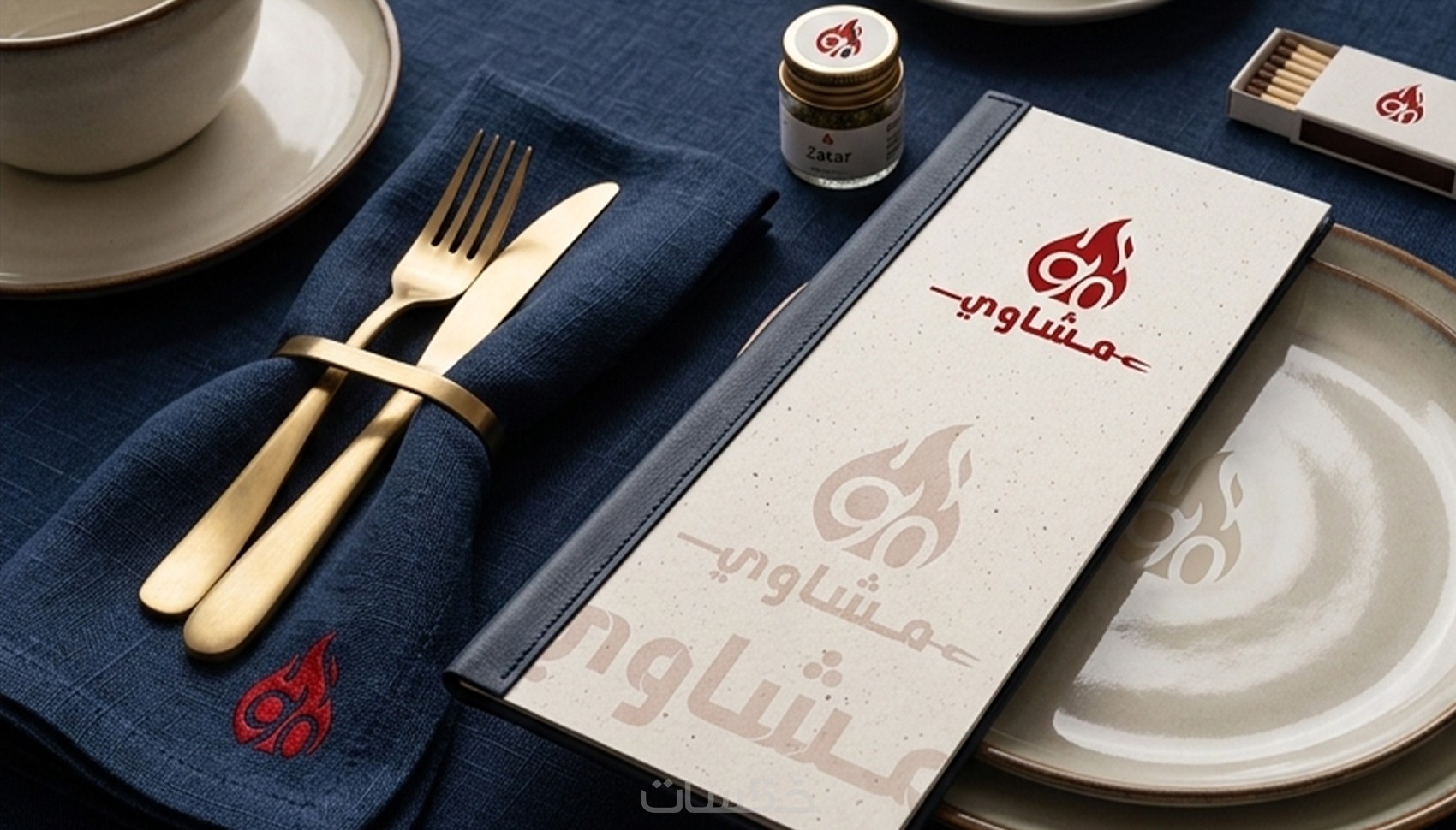 يتم عرض الشعار ضمن نموذج واقعي (Mockup) لتصور كيفية ظهوره على المنتجات أو المواد التسويقية.