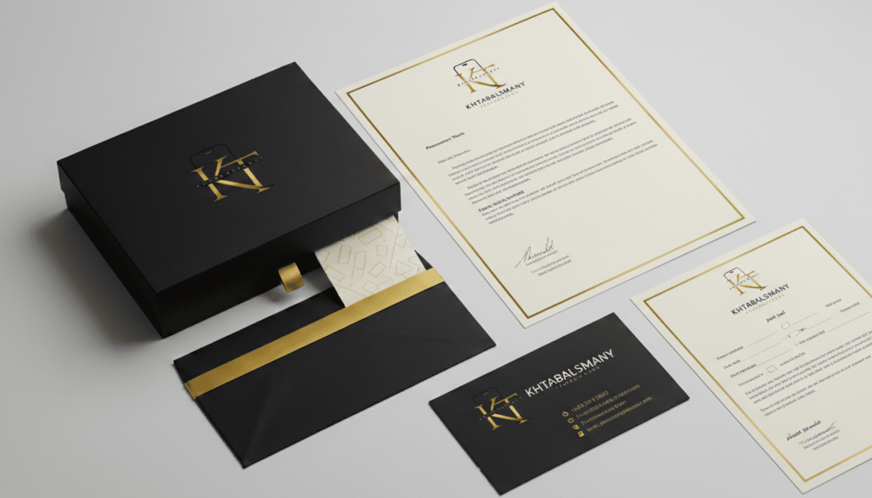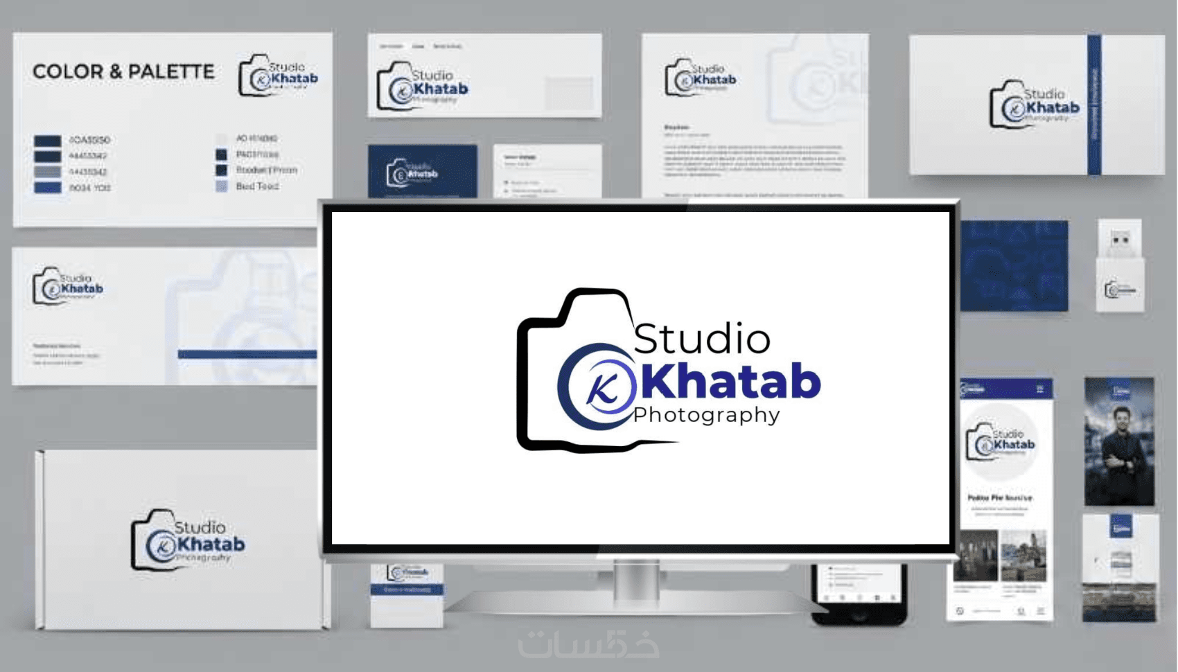 سأقدم لك عرضاً تقديمياً للتصاميم على نماذج واقعية لتتخيل شكل هويتك قبل التنفيذ النهائي.