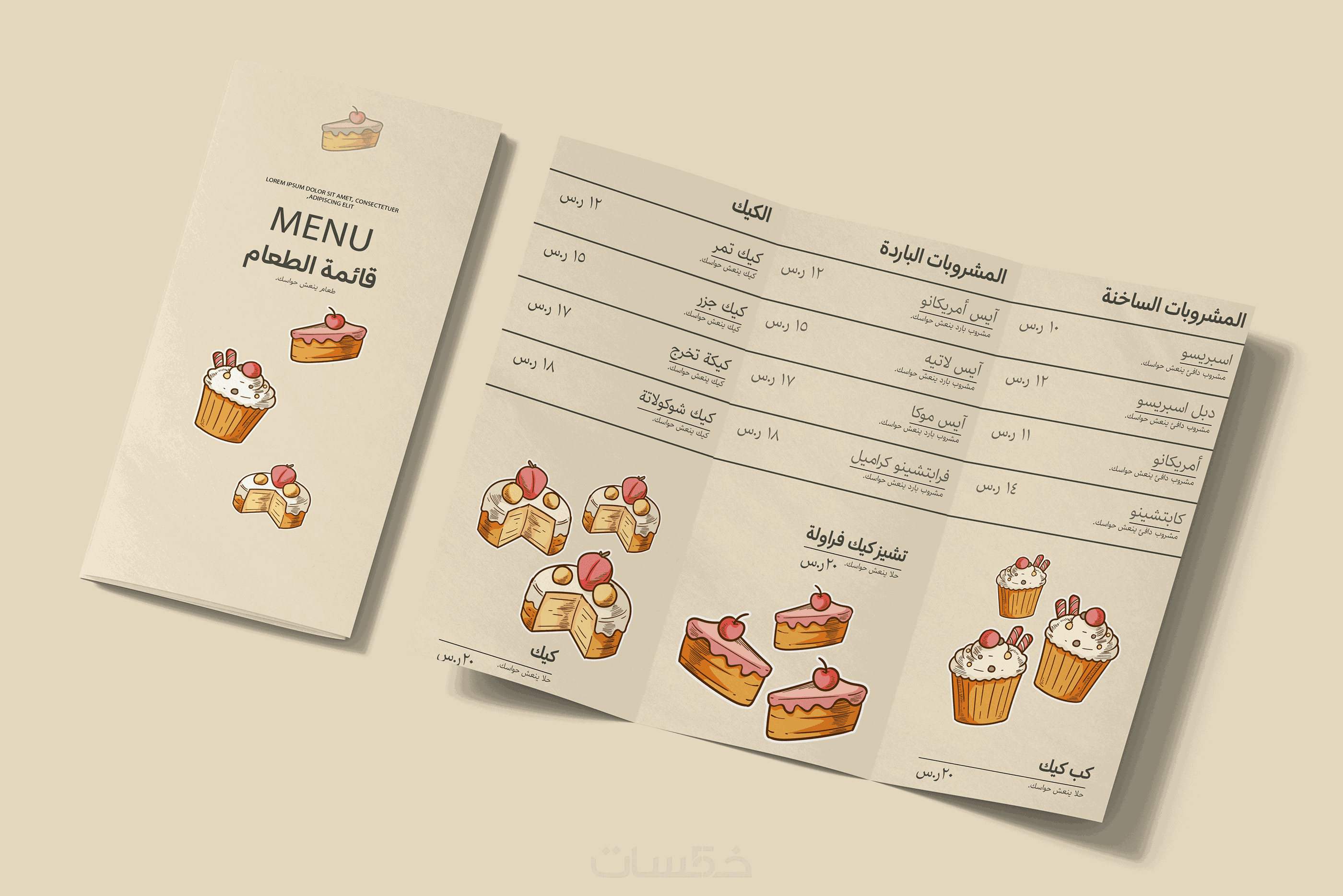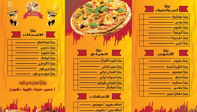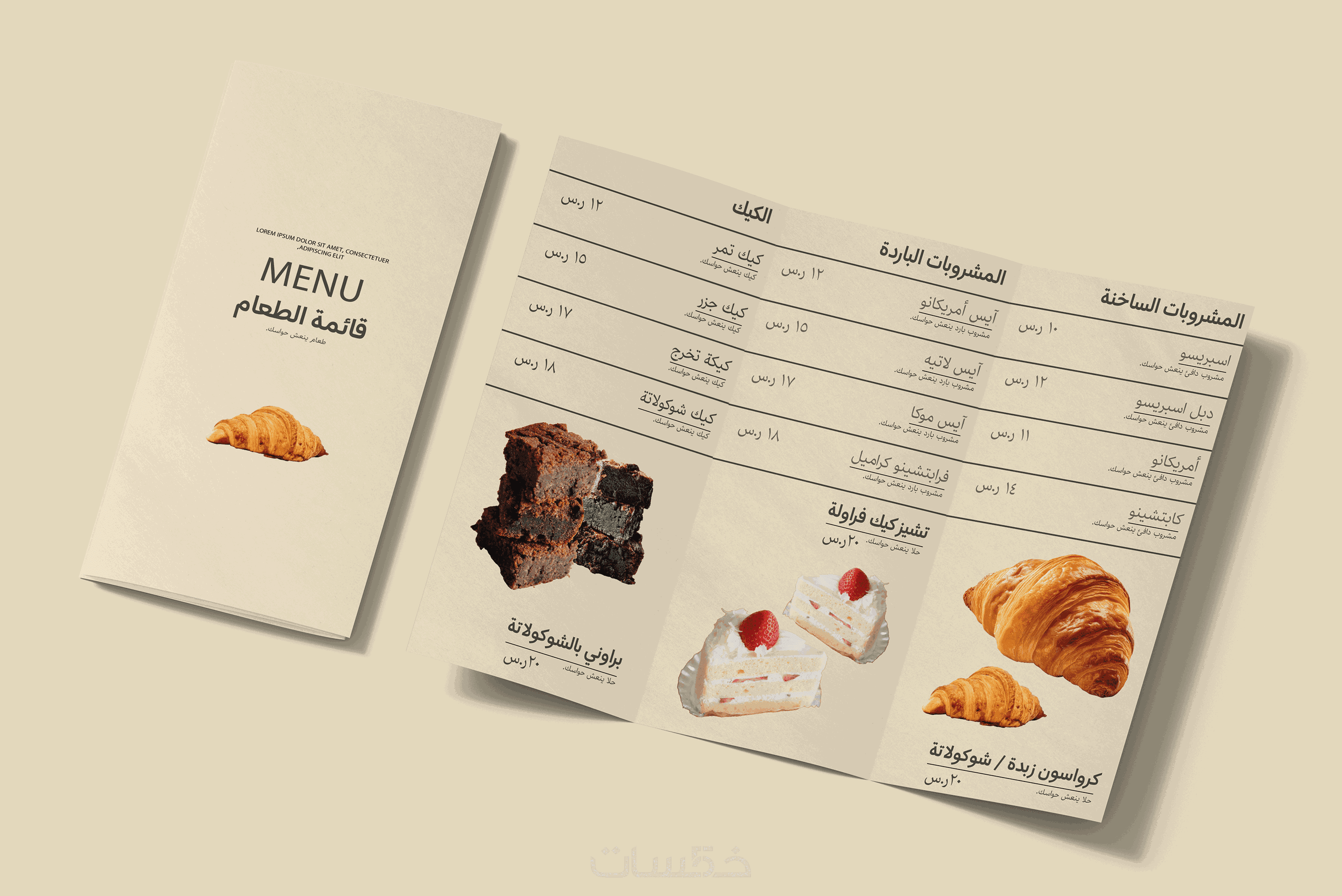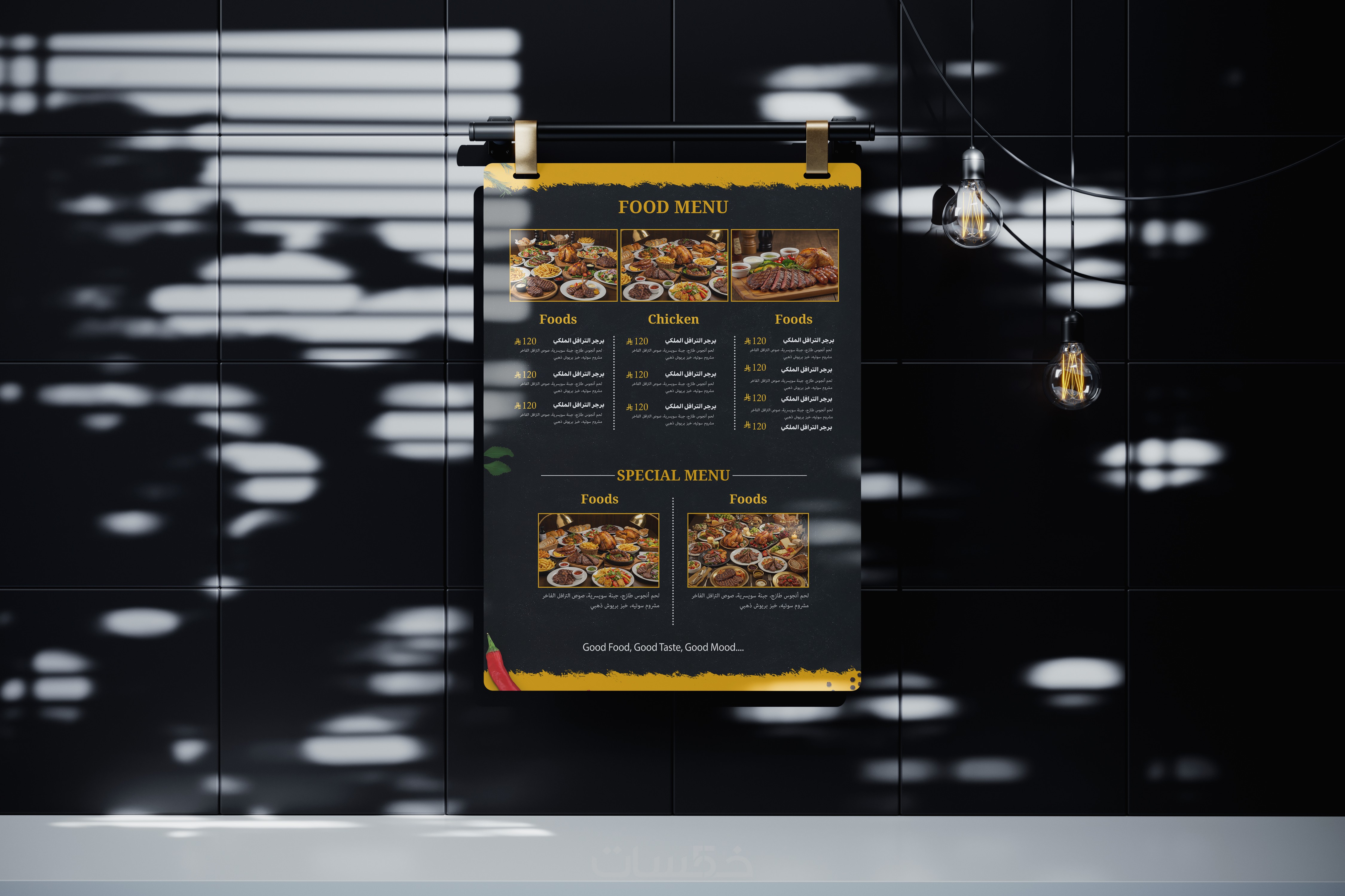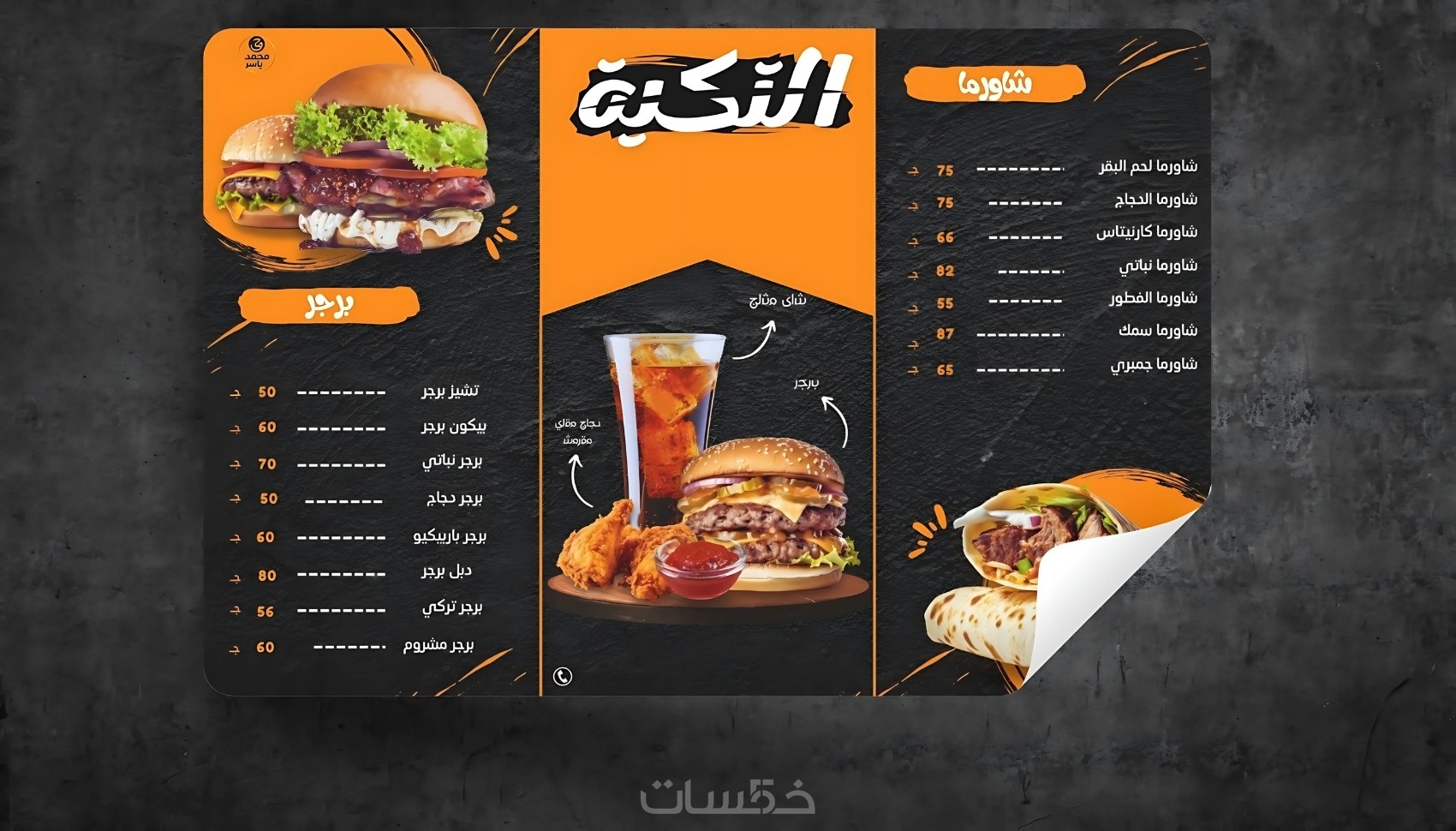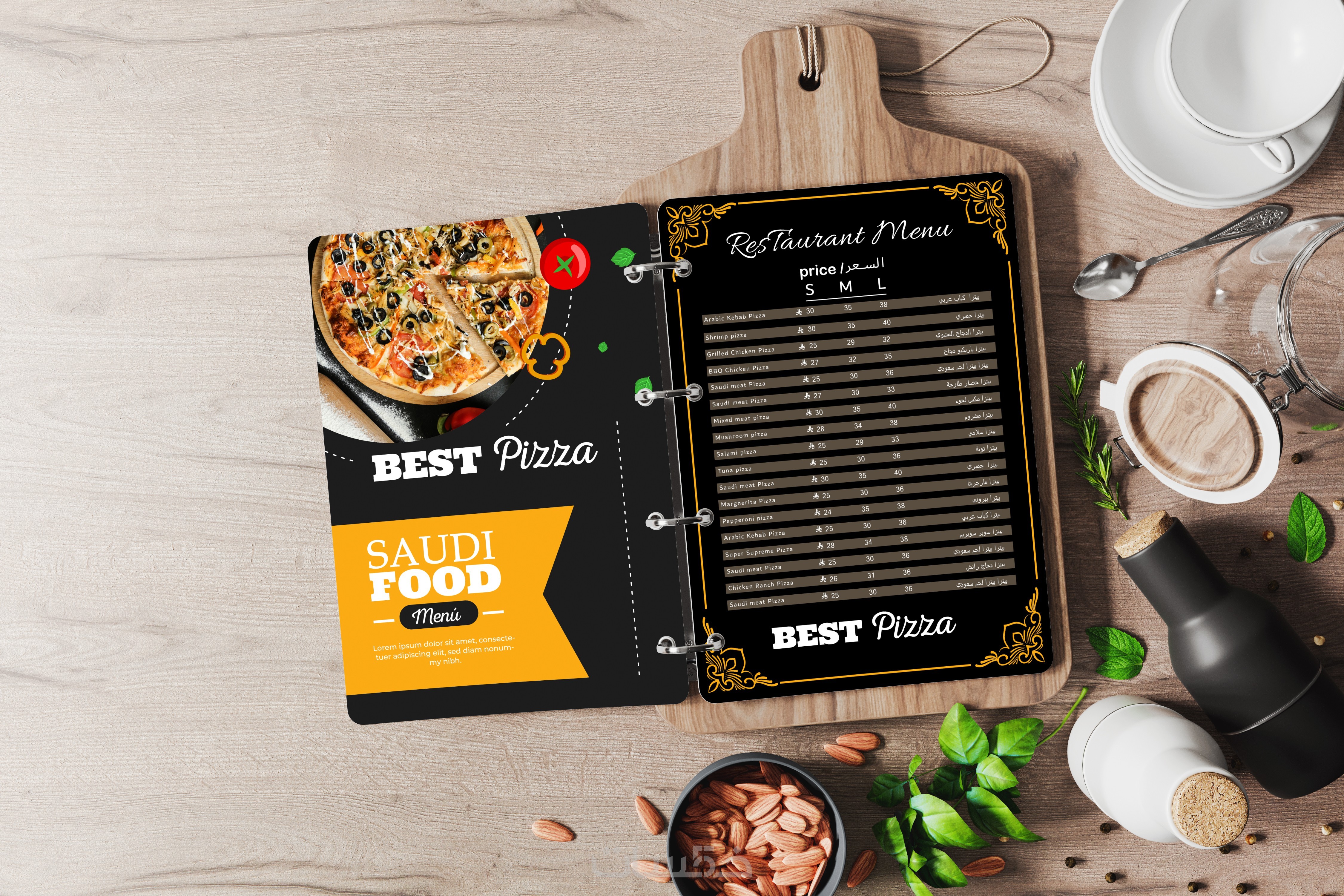 - اختيار التصميم: يتضمن اختيار الألوان والخطوط وتوزيع العناصر داخل التصميم بشكل متناسق، بالإضافة إلى وضع لوغو المطعم ومعلومات التواصل في مكانها المناسب.