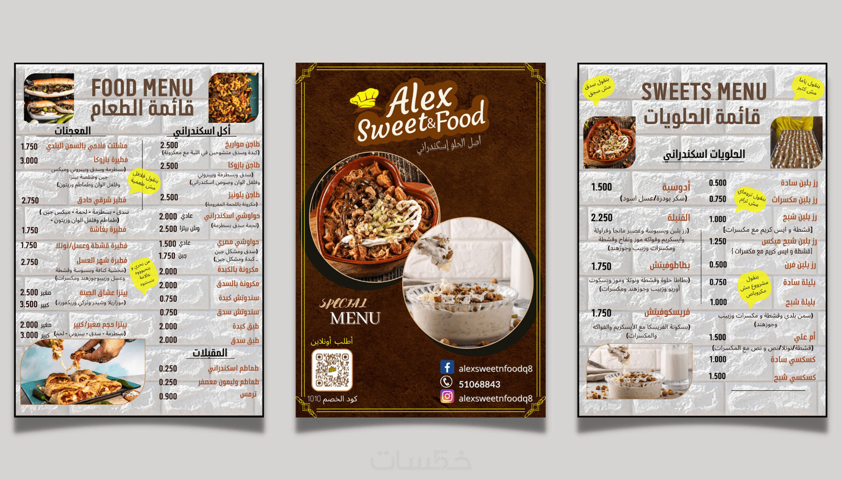 - تصميم منيو أكثر من صفحة ( السعر حسب الأتفاق - ارجو التواصل عبر الرسائل لتحديد حجم العمل و السعر وميعاد التسليم )