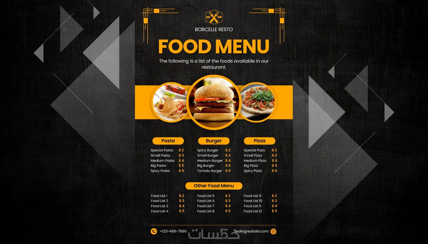 تصميم قائمه طعام تلائم علامة مطعمك التجارية