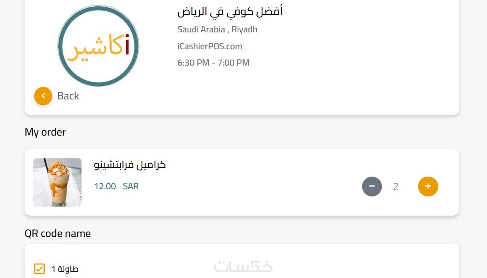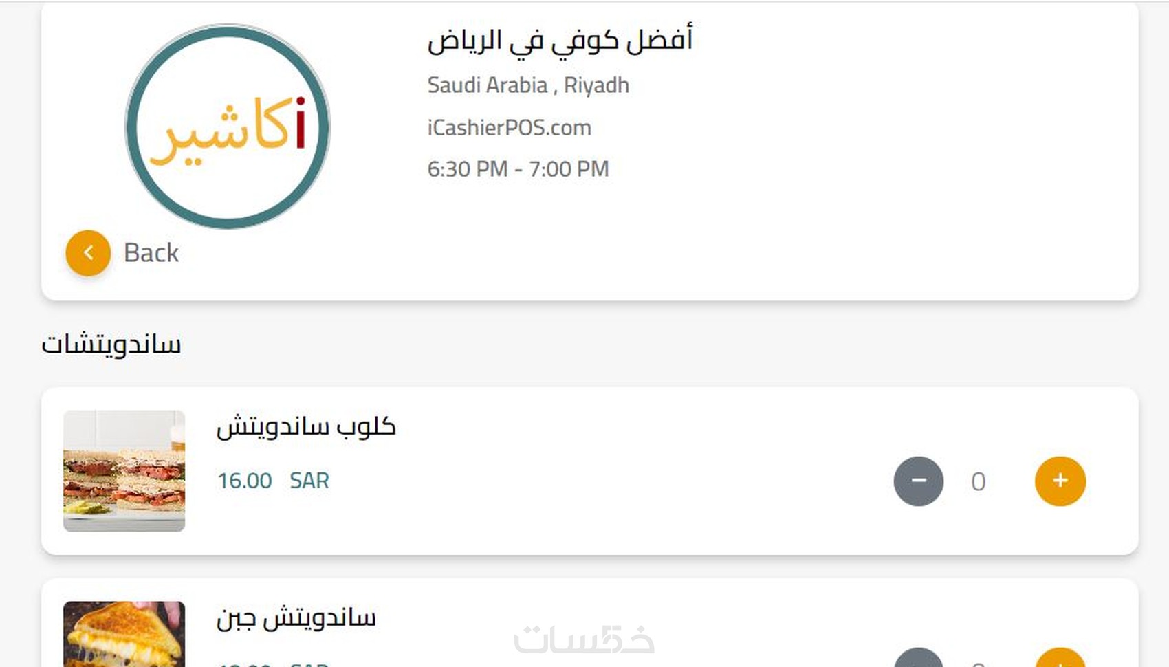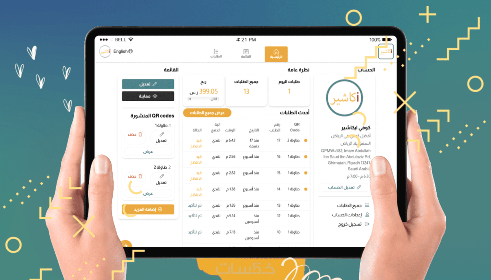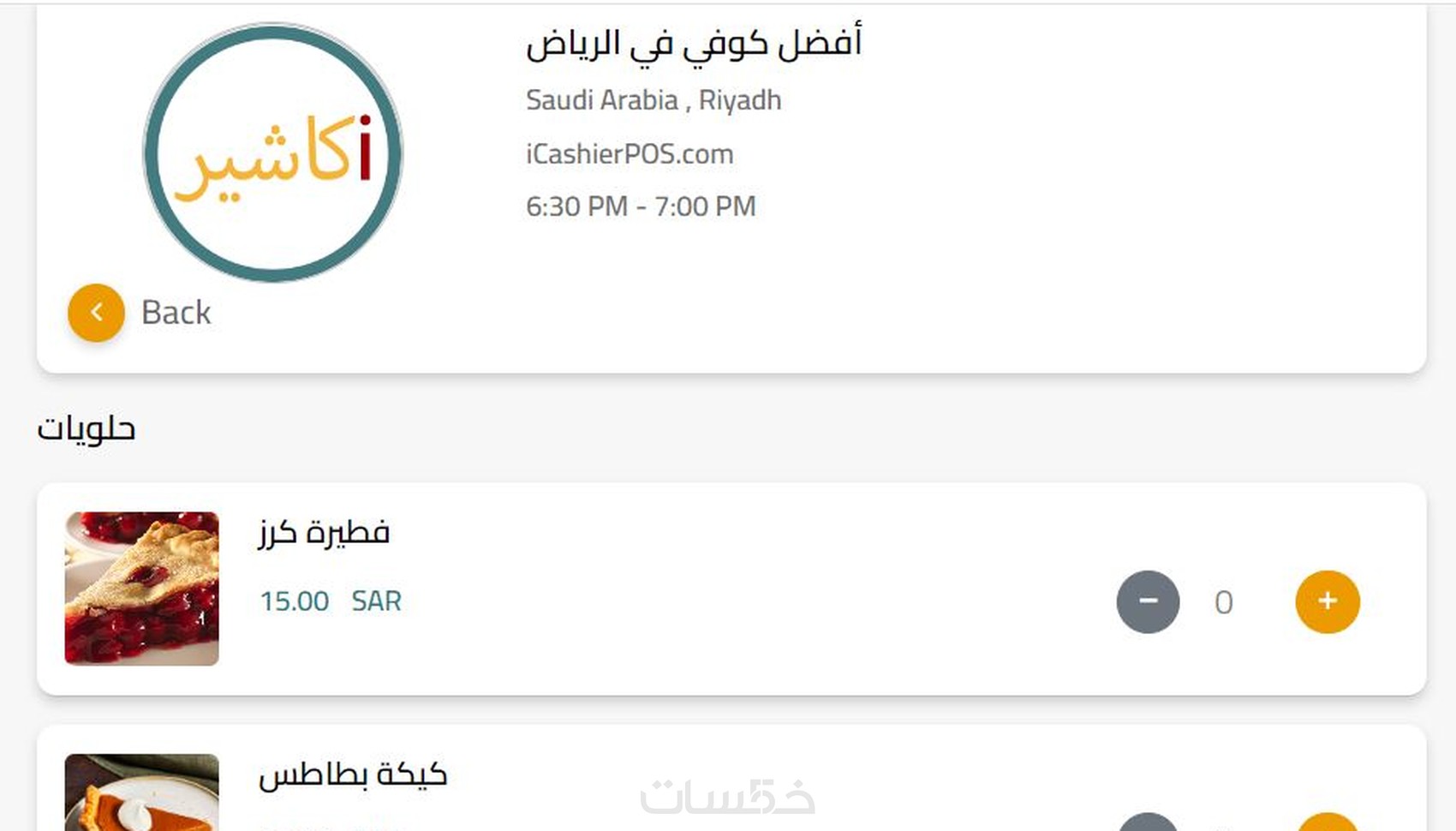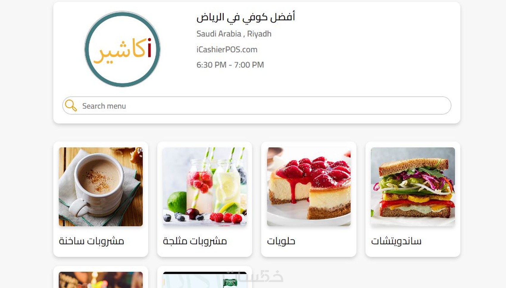 ايكاشير منيو الكتروني مجاني يسمح لك بعرض منتجات مطعمك أو الكوفي للزبائن بطريقة مصورة ورقمية وسهل الطلب منه. إسمح لزبائنك بتصفح المنيو رقميًا والطلب مباشرة من الجوال من دون الانتظار ومن أي مكان داخل المطعم أو الكوفي بإستخدام كاميرة الزبون عن طريق الباركود فقط واستغنى عن المنيو الورقي. الخدمه متاحه لدفع الكاش فقط وحجز الطلبات من داخل وخارج المطعم.