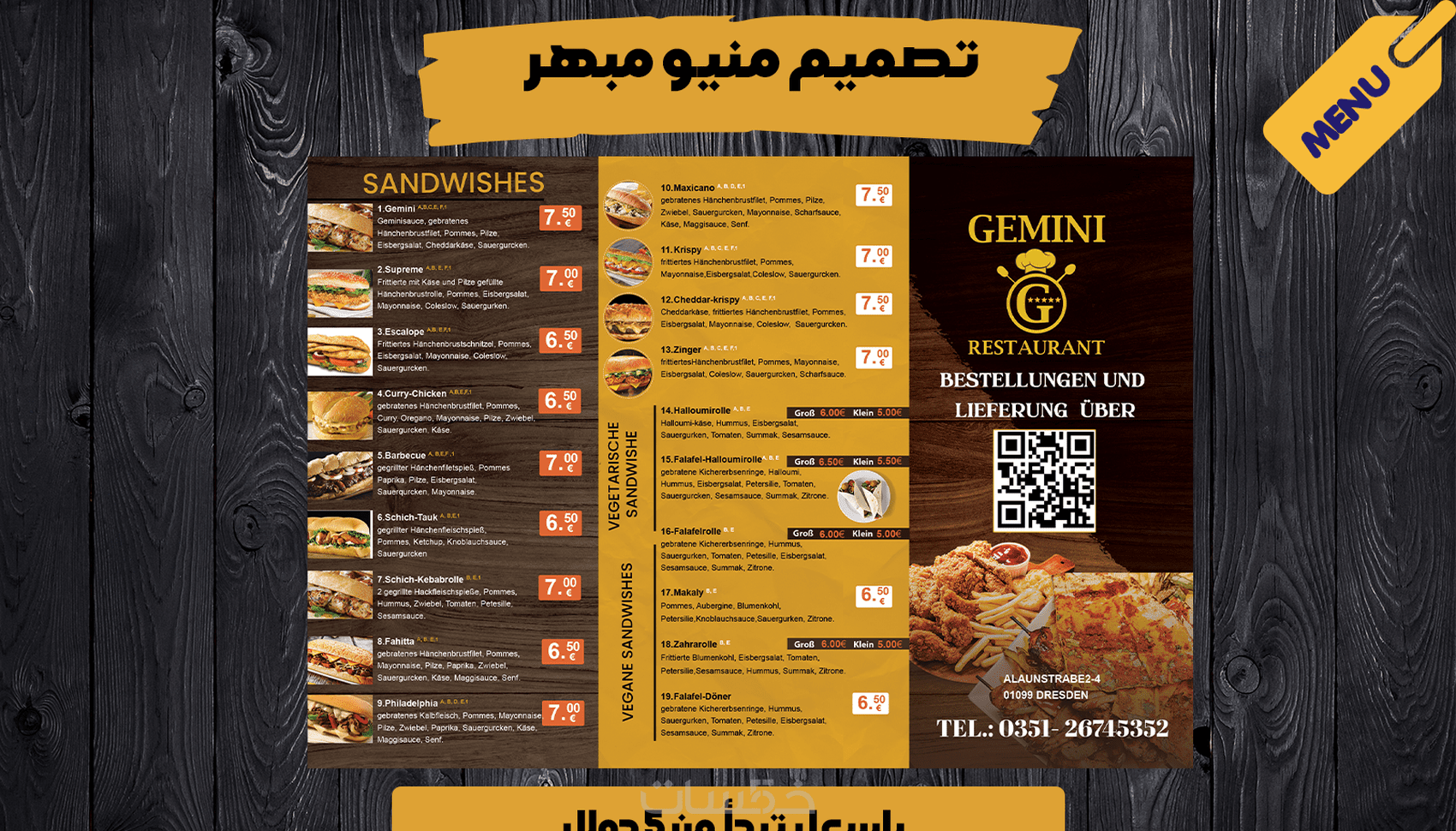 عمل وجه اخر للمنيو ب20 صنف ليكون التصميم من وجهين