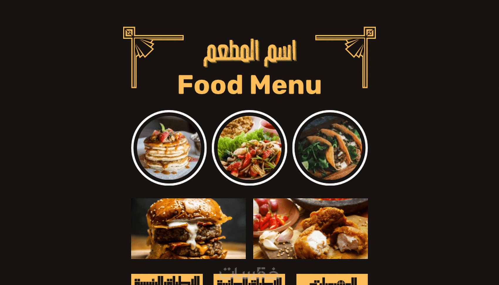 صورة خاصة بشعار المحل + الاسم وارقام التواصل ( وجه للمنيو ) بنفس الثيم وبجودة عالية