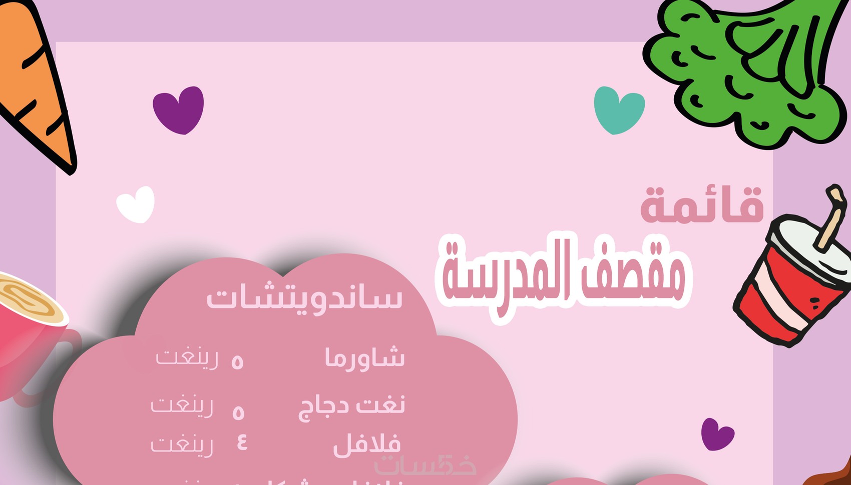 عمل منيو لمقصف مدرسي نسختين واحدة للذكور و اخرى للاناث التصميم بواسطة برنامج ادوبي فوتوشوب واليستريتور التسليم بصيغة pdf.png.jpg يمكنني التعديل حسب طلبكم واضافة الصور اسعد بتواصلكم واستفسارتكم