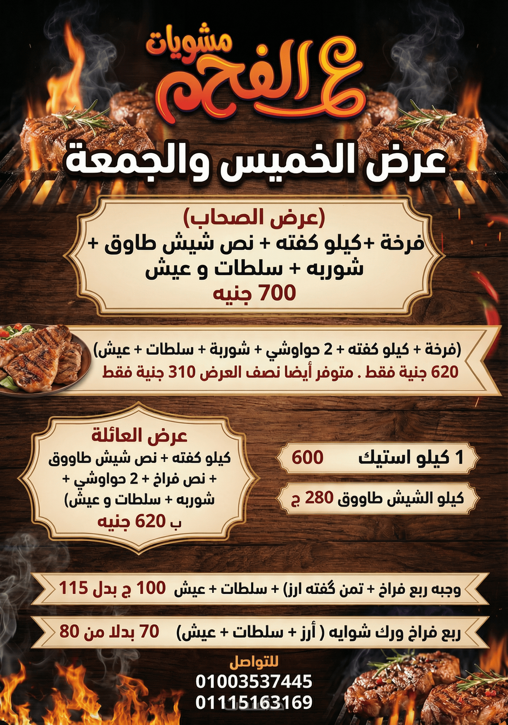 أقدّم لك خدمة تصميم منيو احترافي مناسب للمطاعم، الكافيهات، الفاست فود، والحلويات، بتصميم عصري ومنظم يساعد على عرض الأصناف والأسعار بشكل جذاب وسهل القراءة.