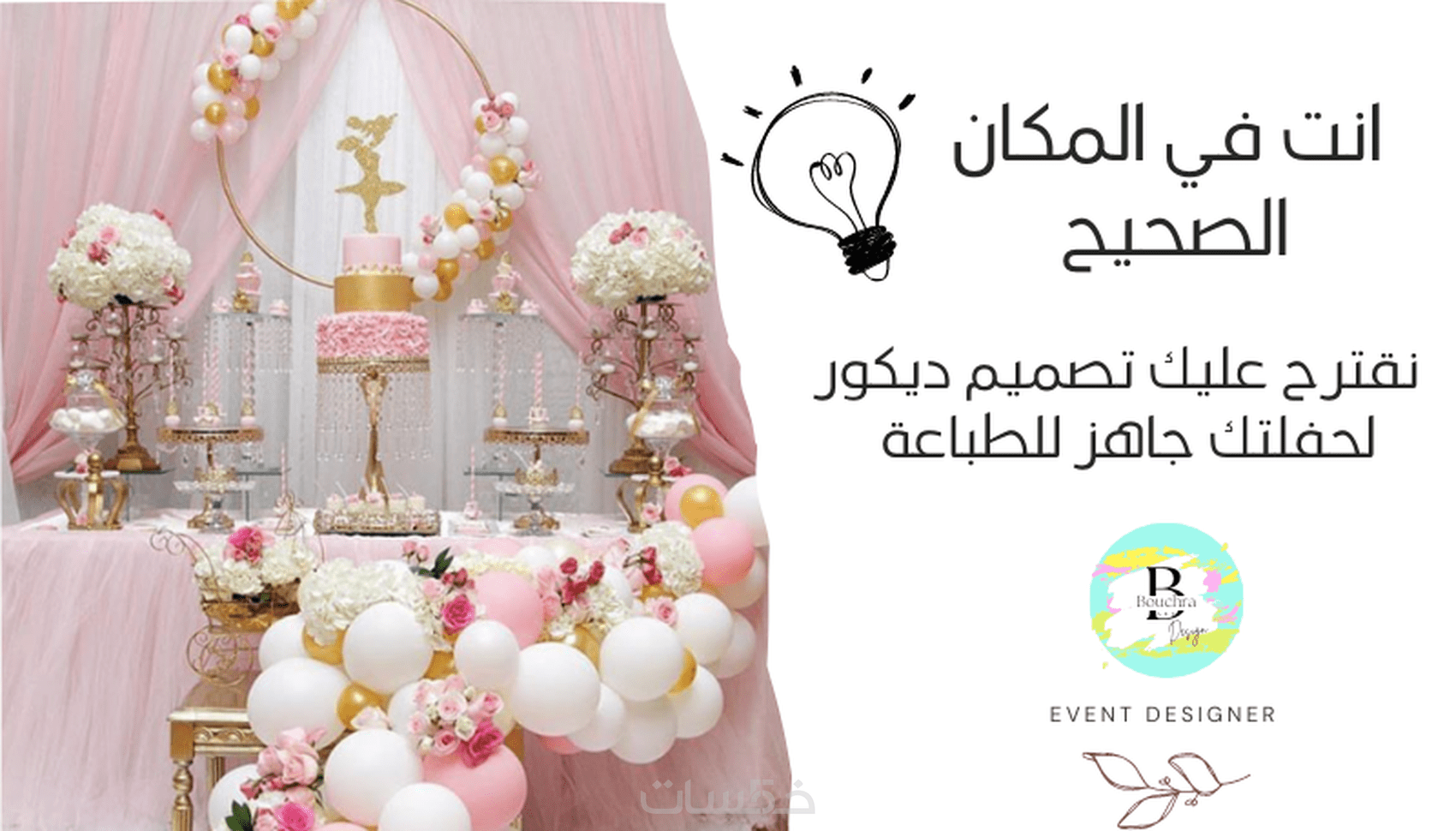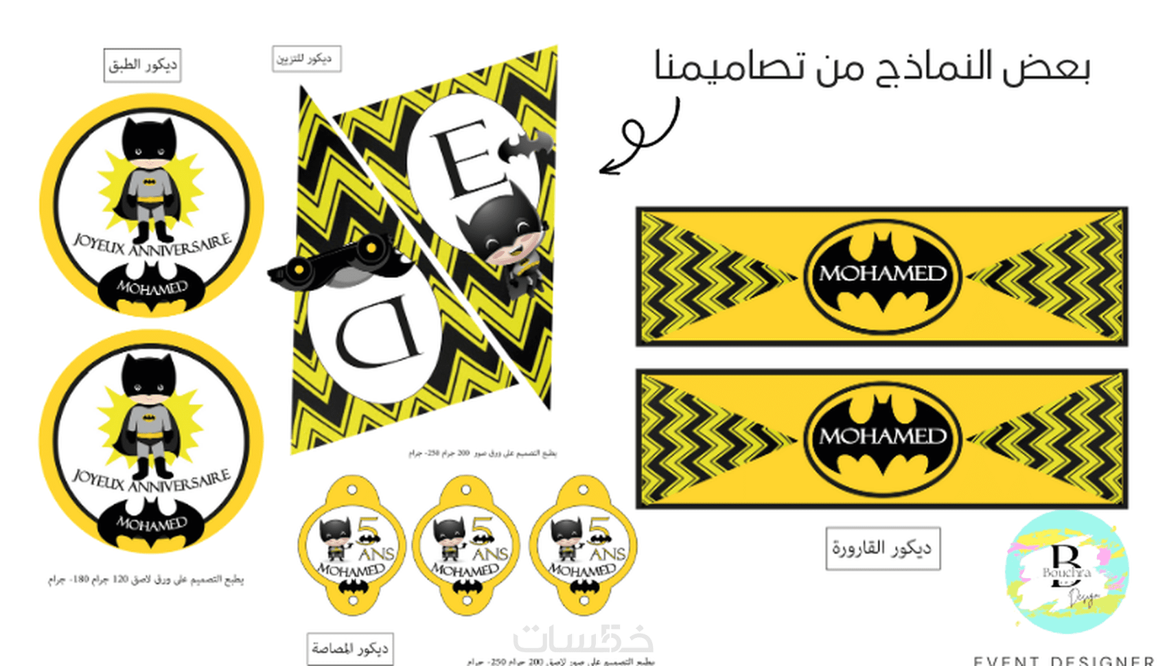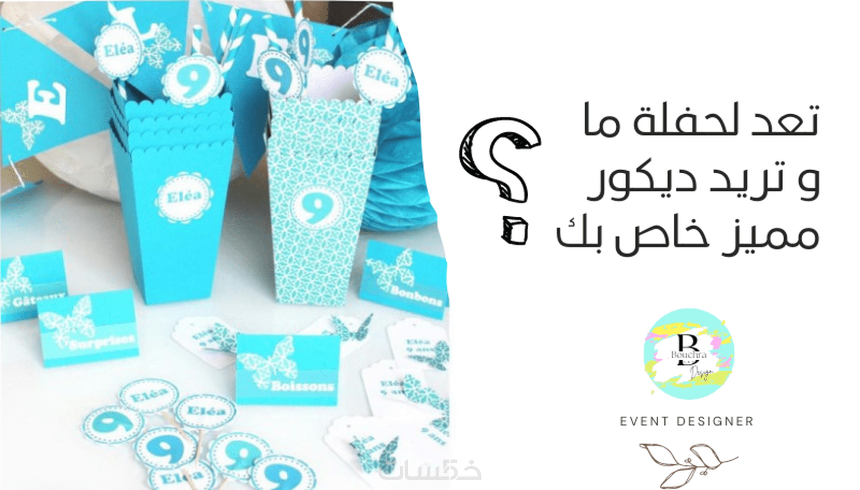 اعرض عليك خدمتي و التي تتمثل في تصميم ديكور لتزيين معدات الحفلة جاهز للطباعة بصيغة PDF قابلة للتعديل (مرتين).