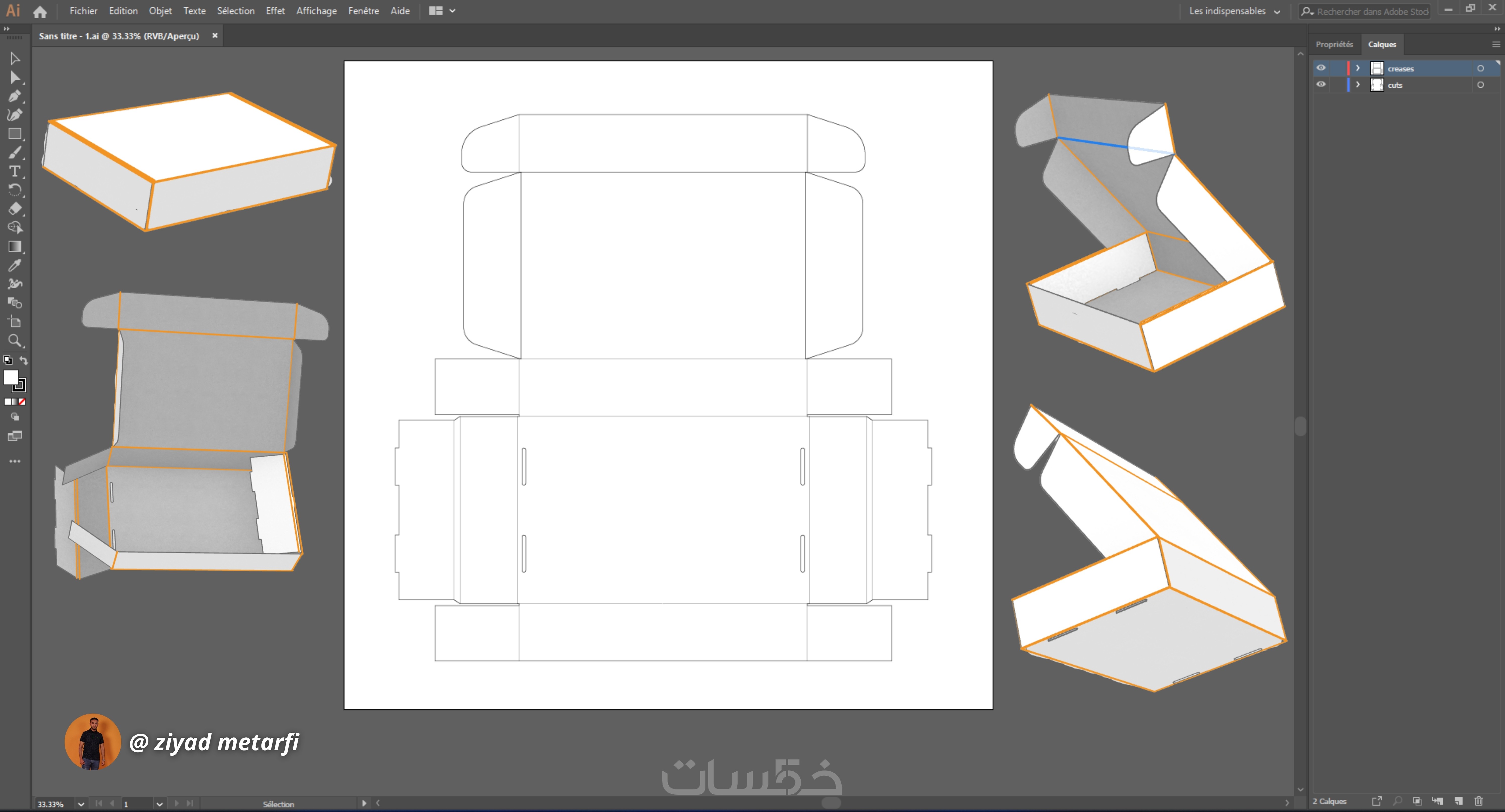 حيث نقوم بالتعديل على المشروع بنأء على ملاحضاتكم وحسب رغبتكم كلمقسات و التصميم الخراجي للعلبة
