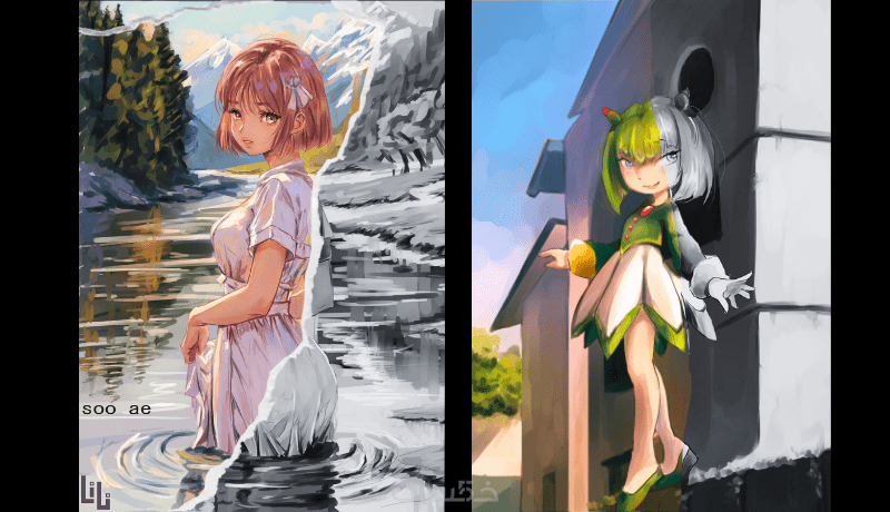 على عكس التلوين الآلي الذي يعتمد على الذكاء الاصطناعي Ai، أقوم بتلوين كل صورة يدويًا باستخدام Clip Studio Paint. هذا يتيح إضافة ظلال مخصصة، تفاصيل دقيقة، وعمق فني، بدلاً من مجرد تأثير عام للفلاتر.