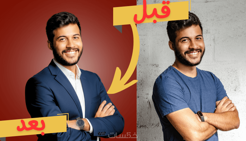 تغيير الخلفية: استبدال الخلفية بأخرى احترافية (خلفية استوديو، مكتب هادئ، أو لون موحد) لعزل العنصر البشري وإبرازه.