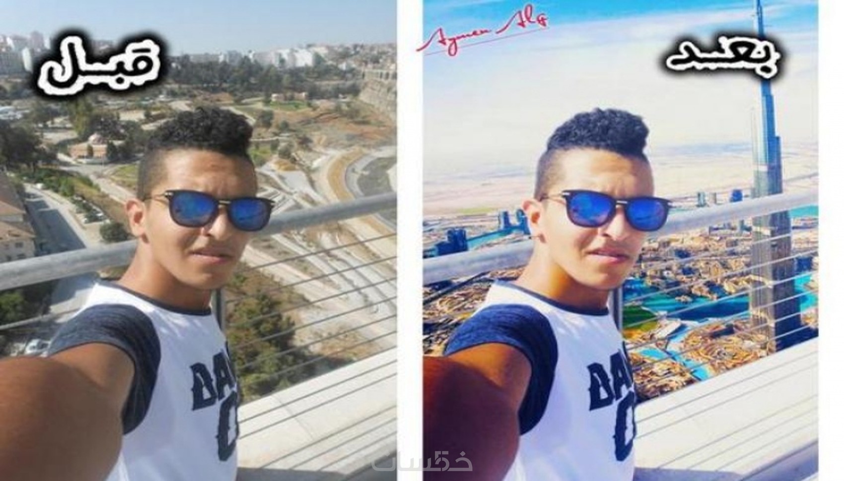 دمج صورة واحدة في اي مكان وزمان تريده بشرط كون صورتك HD فقط .