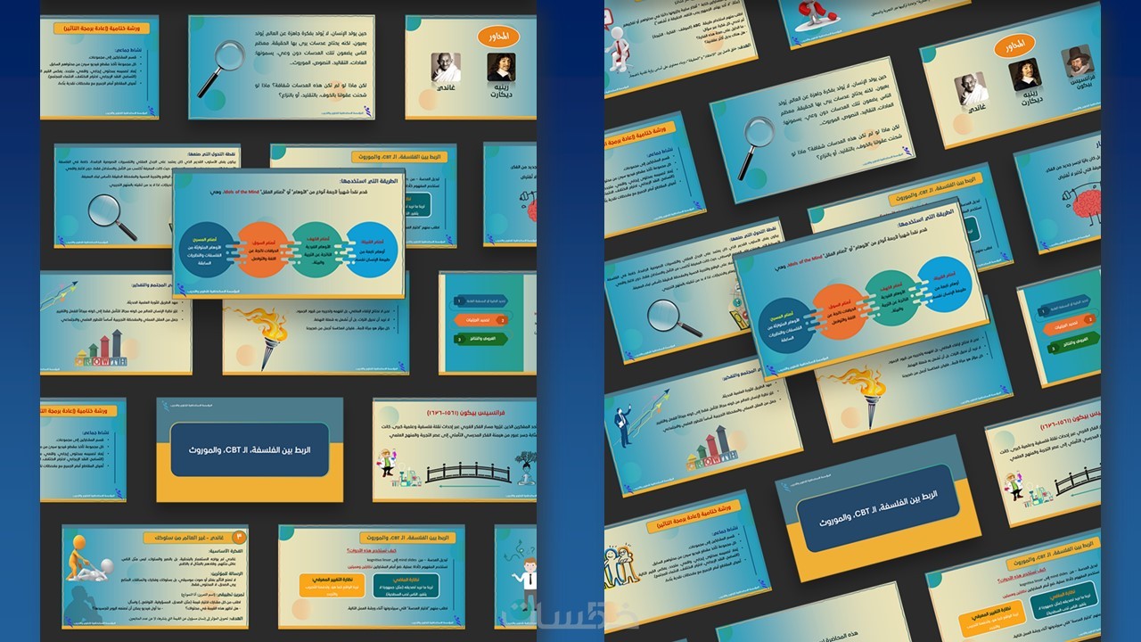 - يبدأ الخبير بتصميم قوالب بوربوينت مناسبة ثم يختار أفضلها وفقًا لتفضيلات الجمهور ومناسبة الألوان والخطوط والتنقلات للموضوع والمحتوى ومكان العرض.