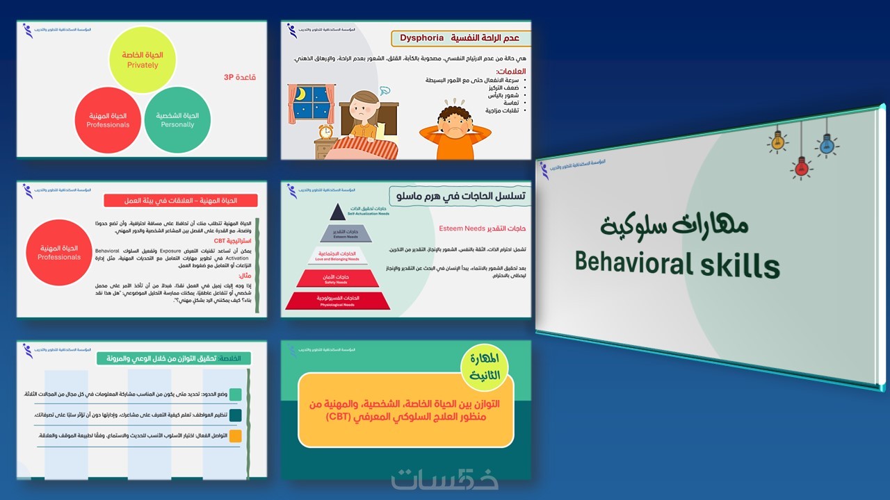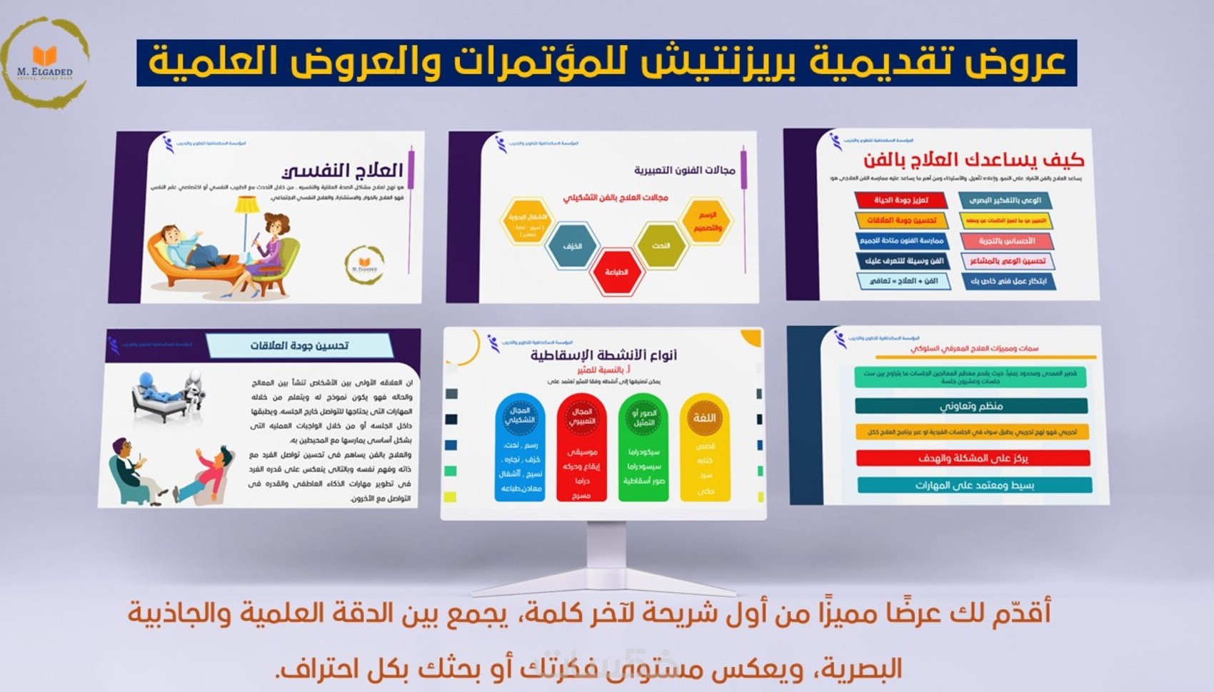 - مهارات تصميم جرافيك عالية لإنتاج شرائح مميزة وجذابة وتمتعه بالذوق الفني في اختيار الخطوط والألوان والأشكال المناسبة والملفتة.