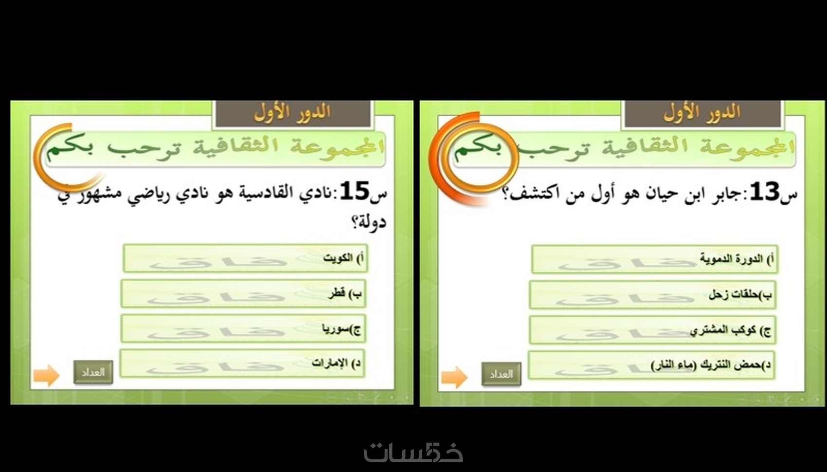 في حال الإجابه الخاطئه يتحول السؤال للفريق المنافس