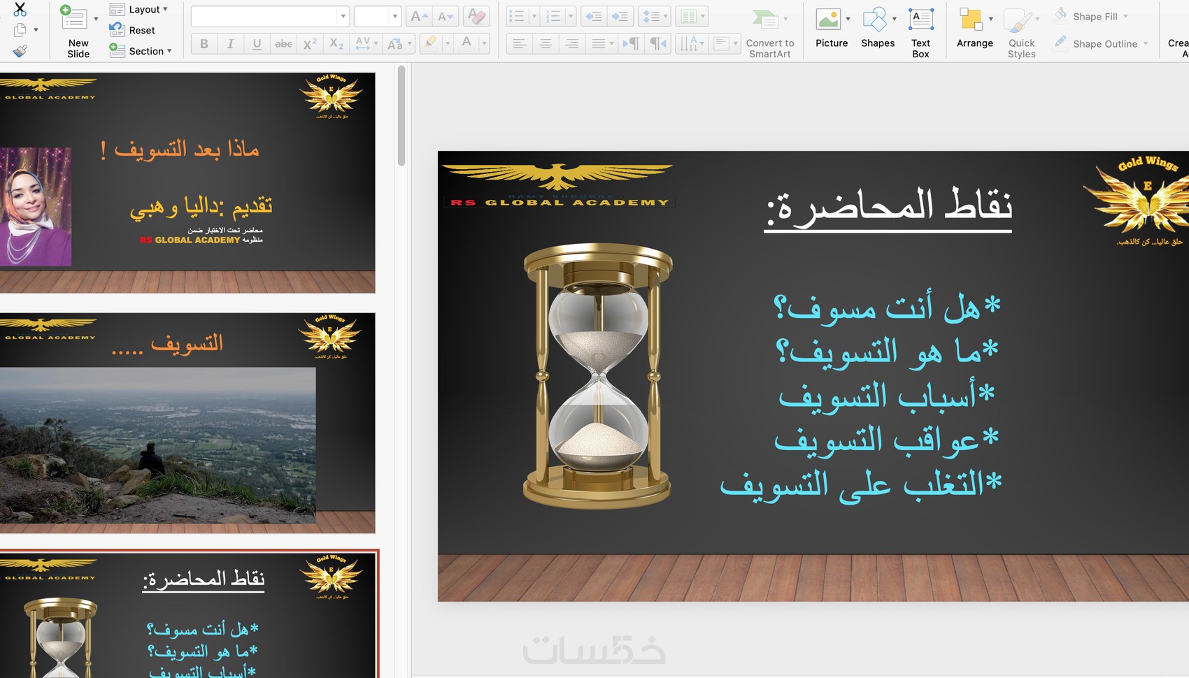 *يمكنني عمل ملف powerpoint مكون من ٢٠ شريحة بشكل ممتاز بأي من اللغتين العربية أو الانجليزية