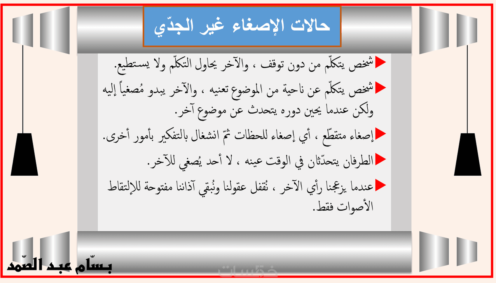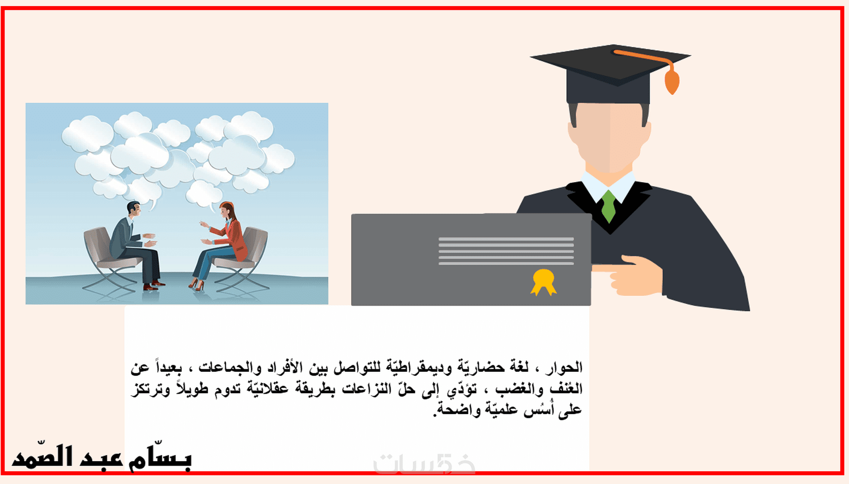 إسمي بسّام عبد الصّمد من لبنان ، أنا مدرّس في القطاع الرسمي للمرحلة الثانوية.