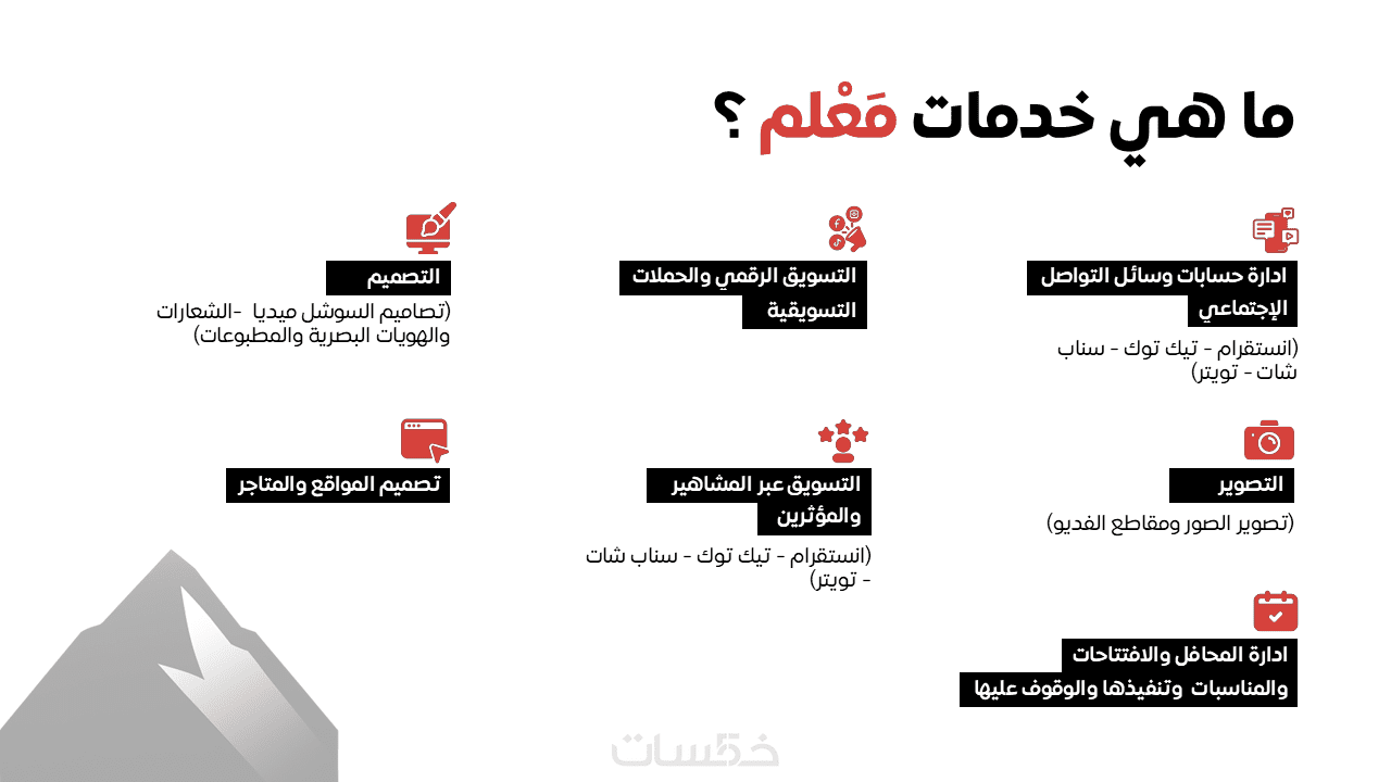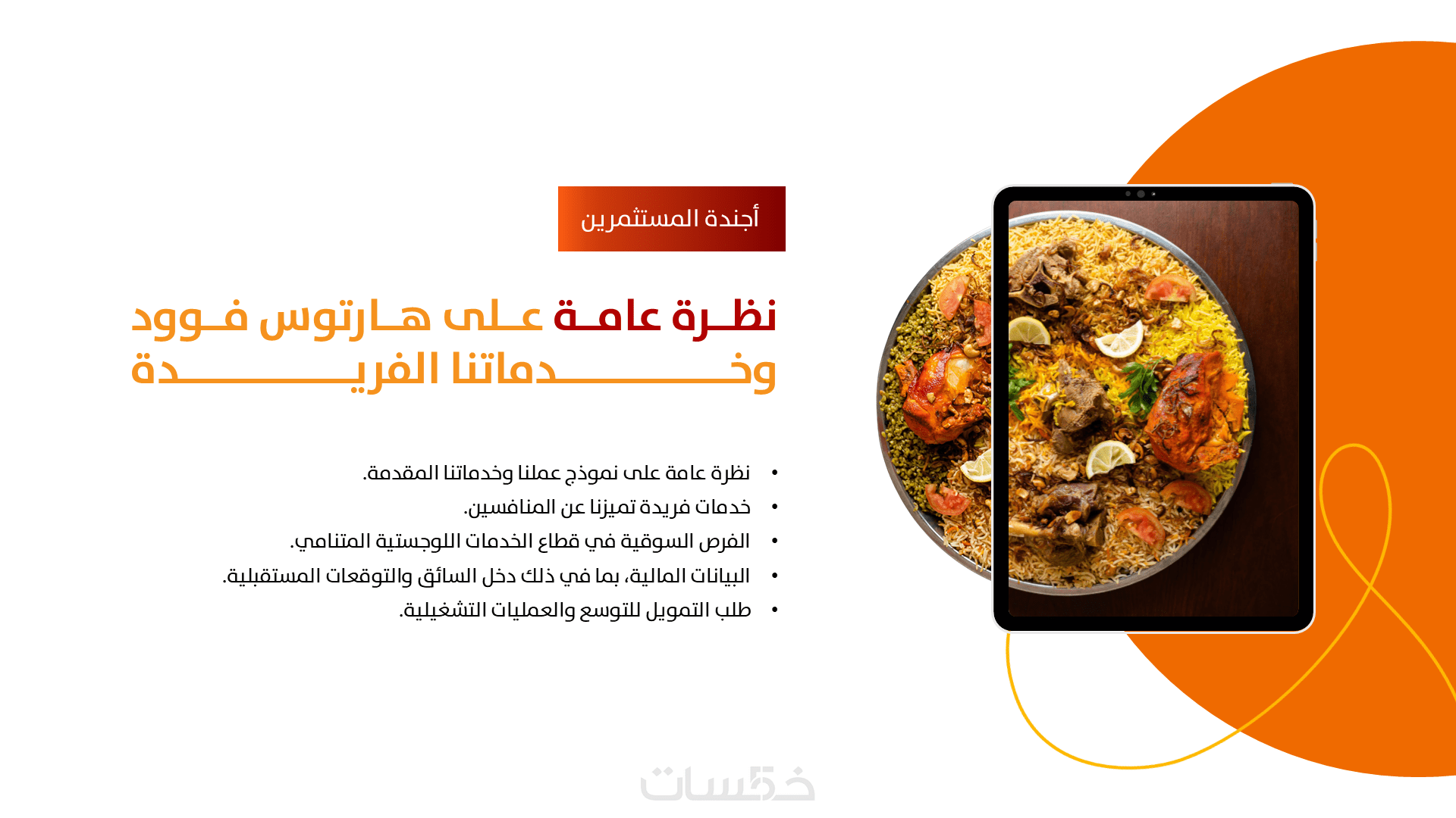 - تسليم العرض بصيغ مختلفة: PPT, PDF, PNG ,JPEG.