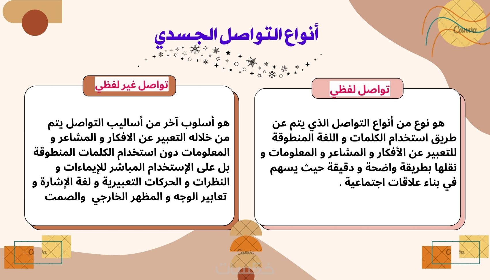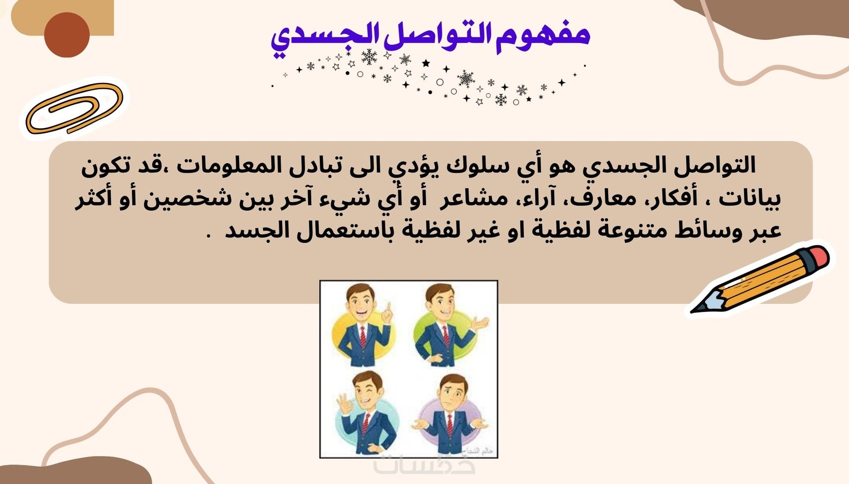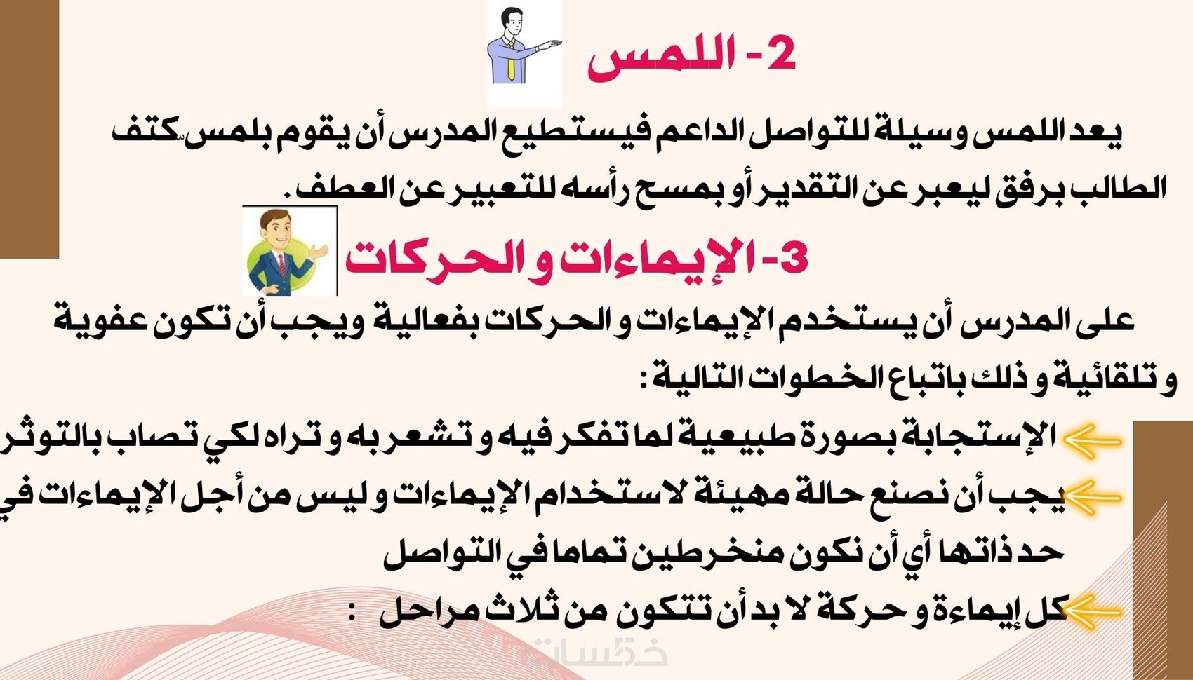 الخدمة عبارة عن عرض تقديمي بعنوان أهمية التواصل الجسدي في تدبير التعلمات يتضمن ست محاور مهمة عرض مهم جدا خصوصا لكل من يشتغل في مجال التعليم ستتمكن من معرفة مجموعة من الجوانب الخفية عن لغة الجسد و ما لها من أهمية أثناء الحوار مع الطلبة و نقل التعلمات عندئد ستشتغل بتلقائية و حرية مما يضيفك حضورا قويا و ثقة أكثر أثناء ممارسة العمل.