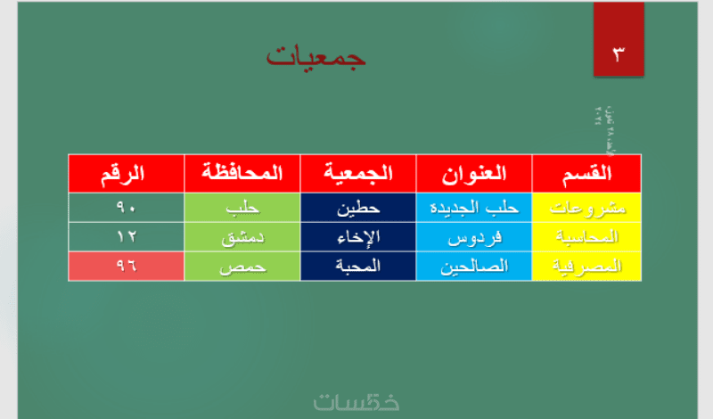 (٣ سلايدات) منسقة الألوان وبجودة عالية مت تاثيرات الانتقال والحركة وعدد لا نهائي من الكلمات في الصفحة