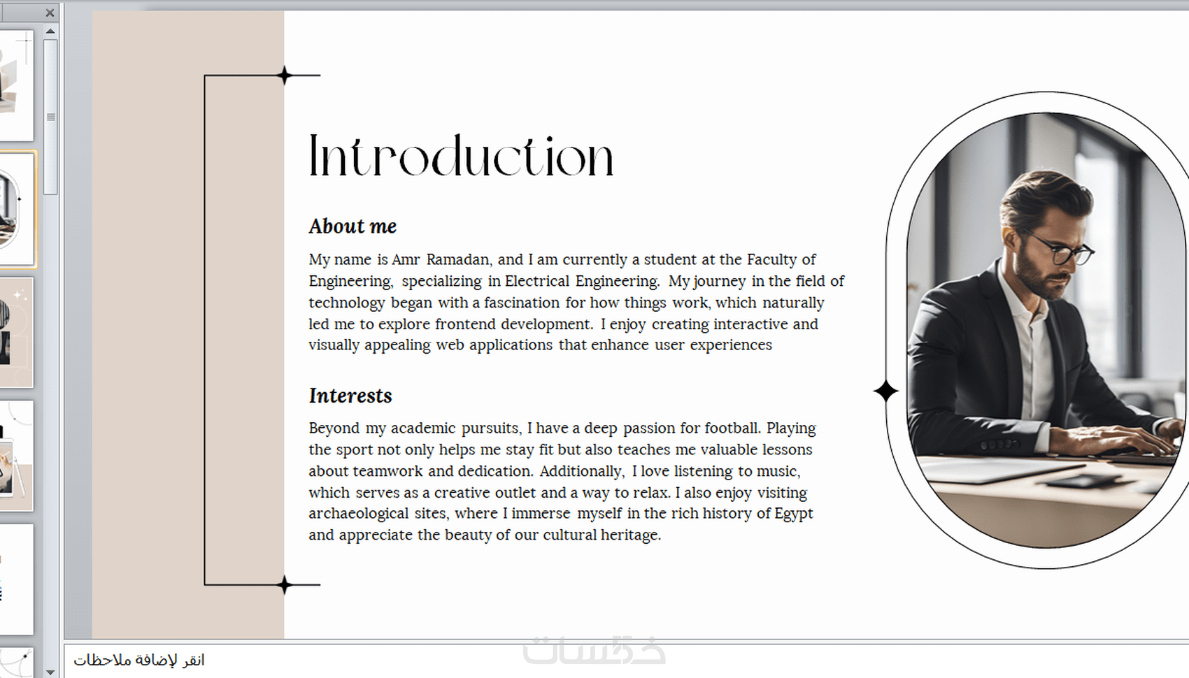أوفر لك خدمة تصميم عروض PowerPoint احترافية ومخصصة تناسب أهدافك، سواء كانت لأغراض تجارية، تعليمية، أو تسويقية.