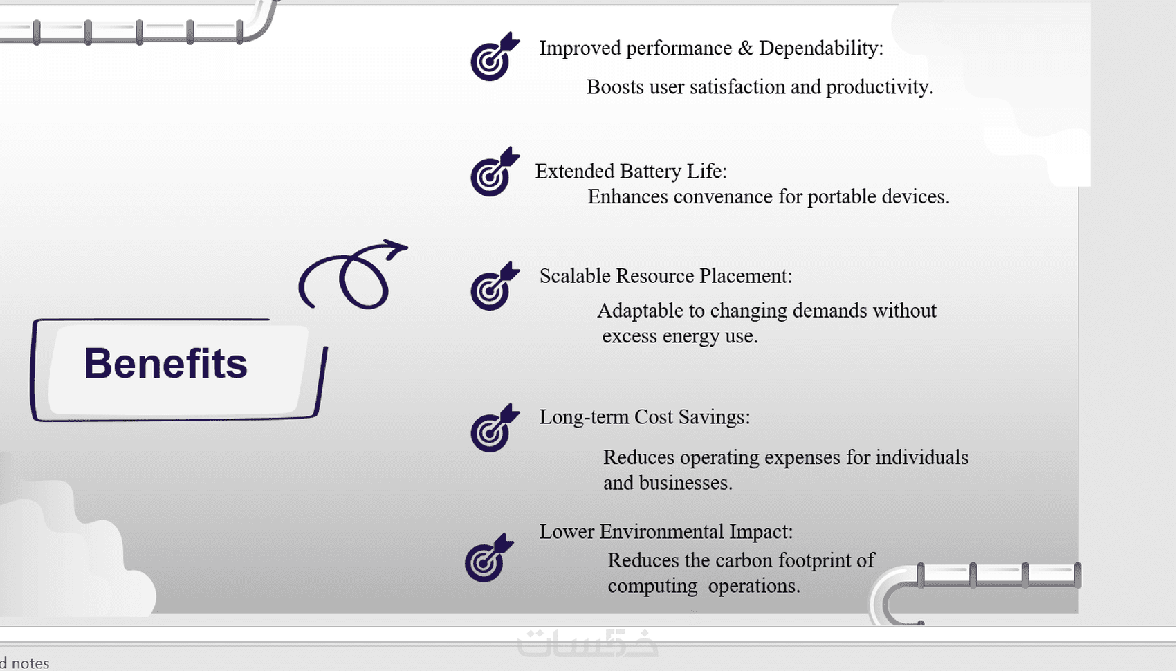 من خلال استخدام الأدوات والتقنيات الحديثة، نضمن لك عرض تقديمي يلبي أعلى المعايير الاحترافية ويترك انطباعاً قوياً لدى جمهورك.