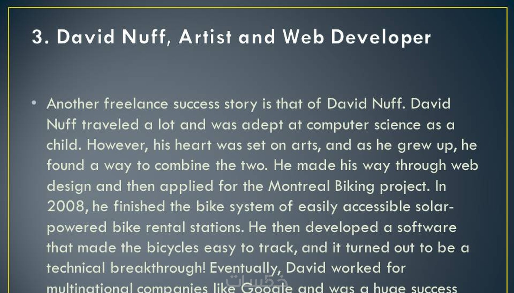 انا ياسمين محمد الحداد بقدم لك خدمة تصميم عروض تقديمية احترافيةباللغة العربية او الانجليزية باستخدام power point لو انت موظف وتريد عرض لشغلك او مدرس او استاذ جامعى وتريد عمل عرض تقديمى للمواد الدراسية والعلمية او لو طالب وعايز تعمل عرض تقديمى لمشروع تخرجك او برزنتيشن لرسالة الماجستير او الدكتوراه فقط ٣شرائح power point