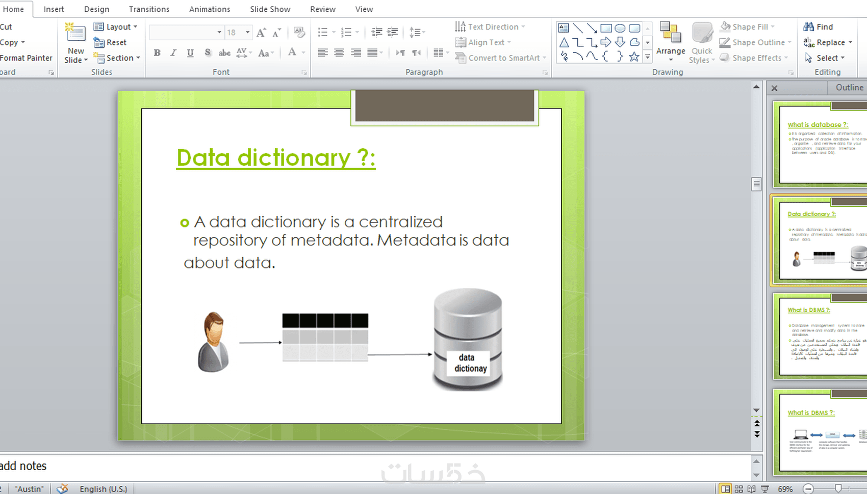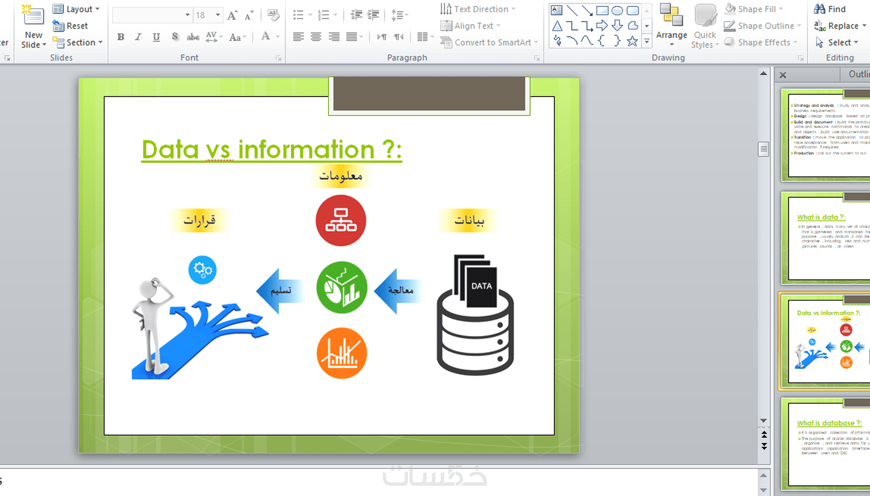 تُعَدُّ العروض التقديمية واحدة من أهم المهارات الوظيفية التي يحتاجها سوق العمل الحديث لأهميتها في توضيح الأهداف وترتيب و اختصار البيانات .