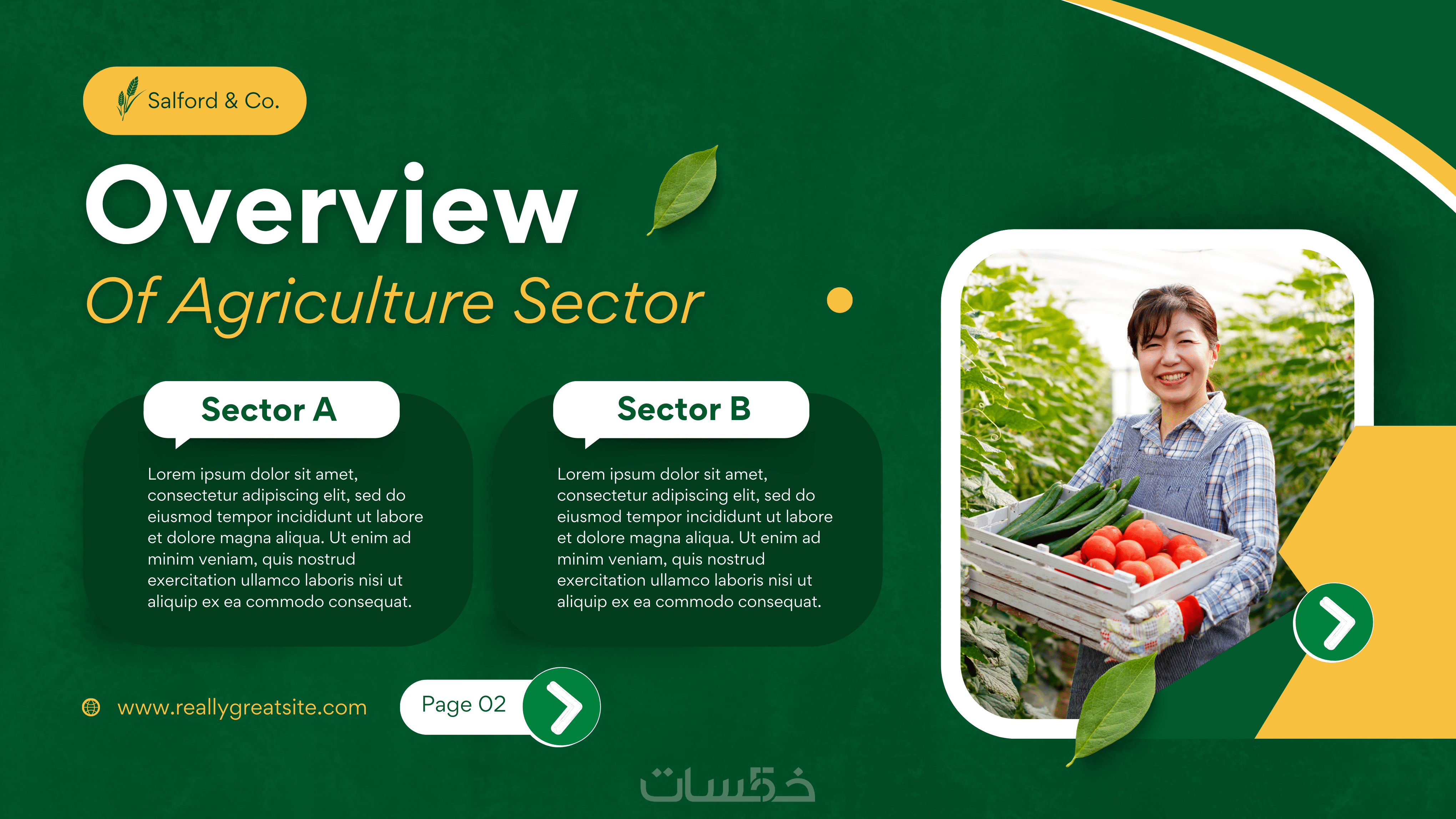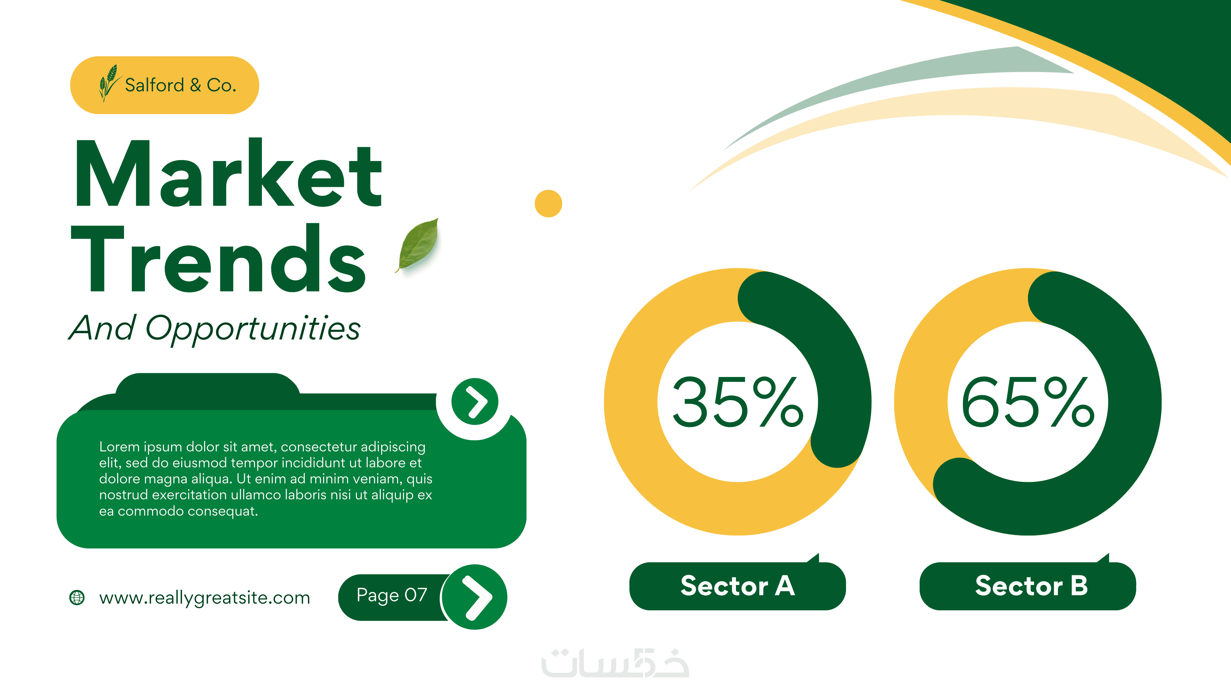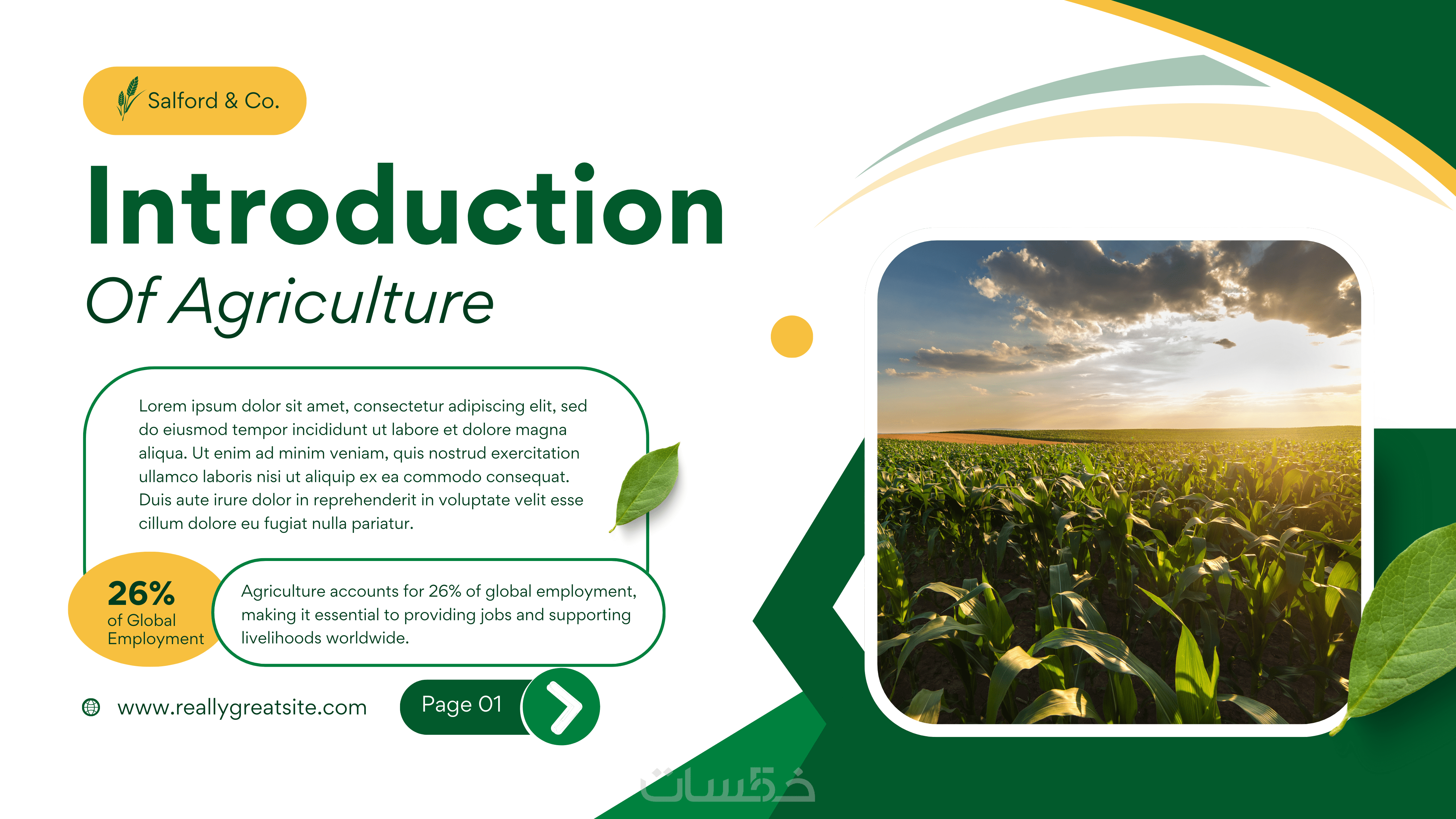 تبدأ الخدمة ب 5 شرائح بوربوينت تتضمن الشريحة الرئيسية مع شكلين انفوجرافيك