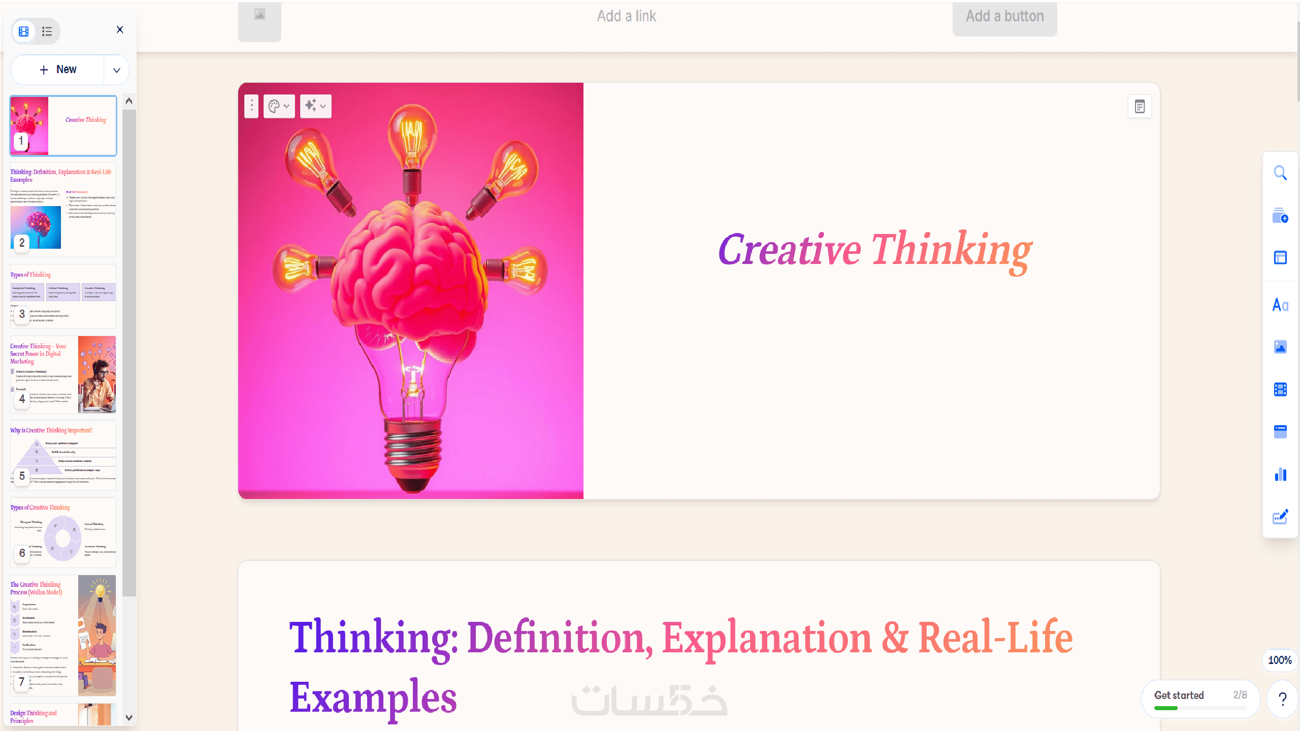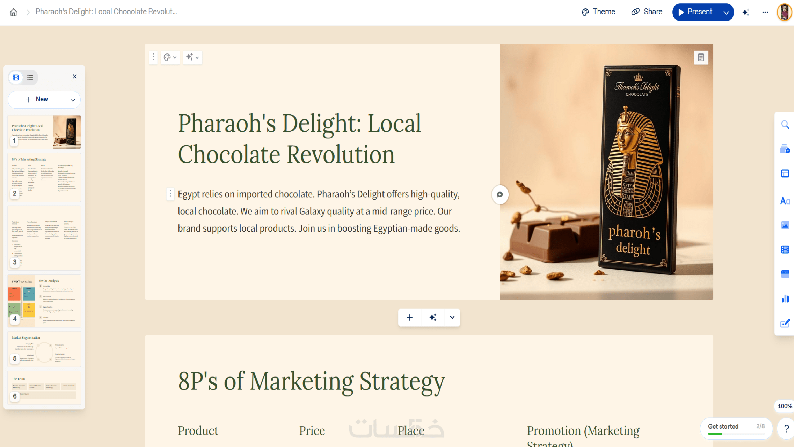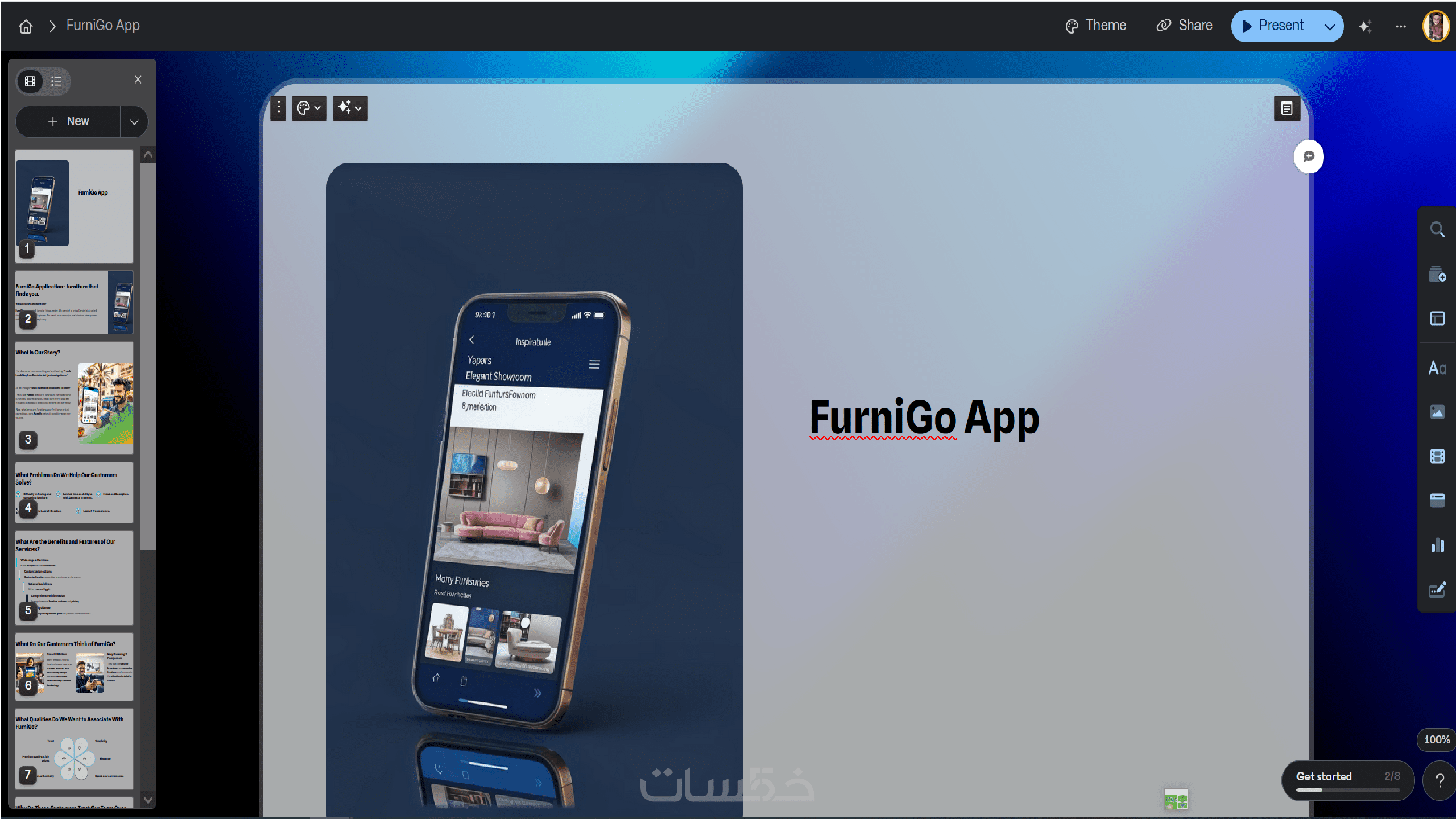 أنا هنا علشان أساعدك تصمم عرض تقديمي (Presentation) احترافي، منسق، يشد الانتباه ويوصل فكرتك بمنتهى الوضوح باستخدام أدوات الذكاء الاصطناعي المتطورة.
