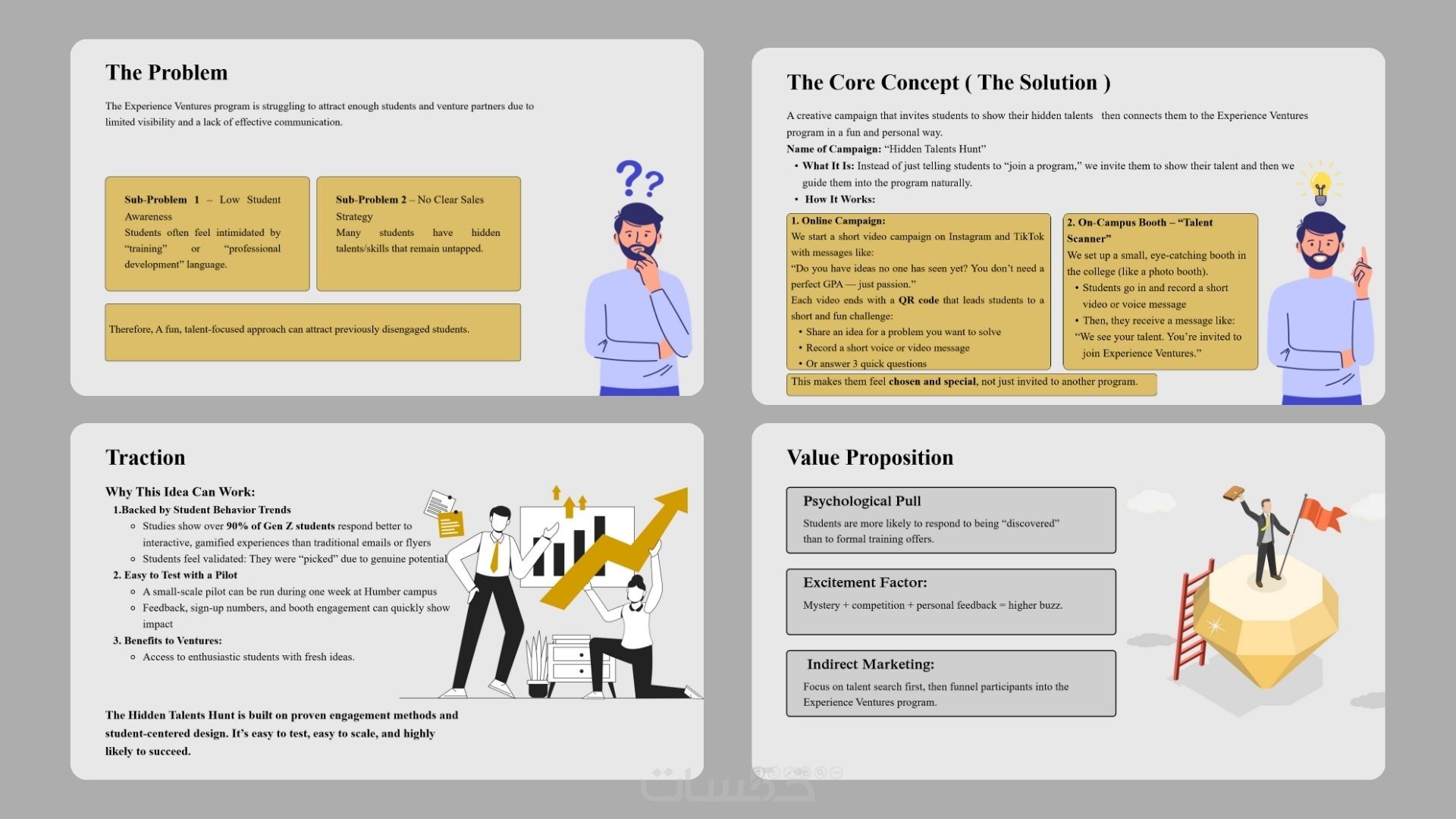 - تصميم احترافي باستخدام PowerPoint أو Google Slides أو Canva.
