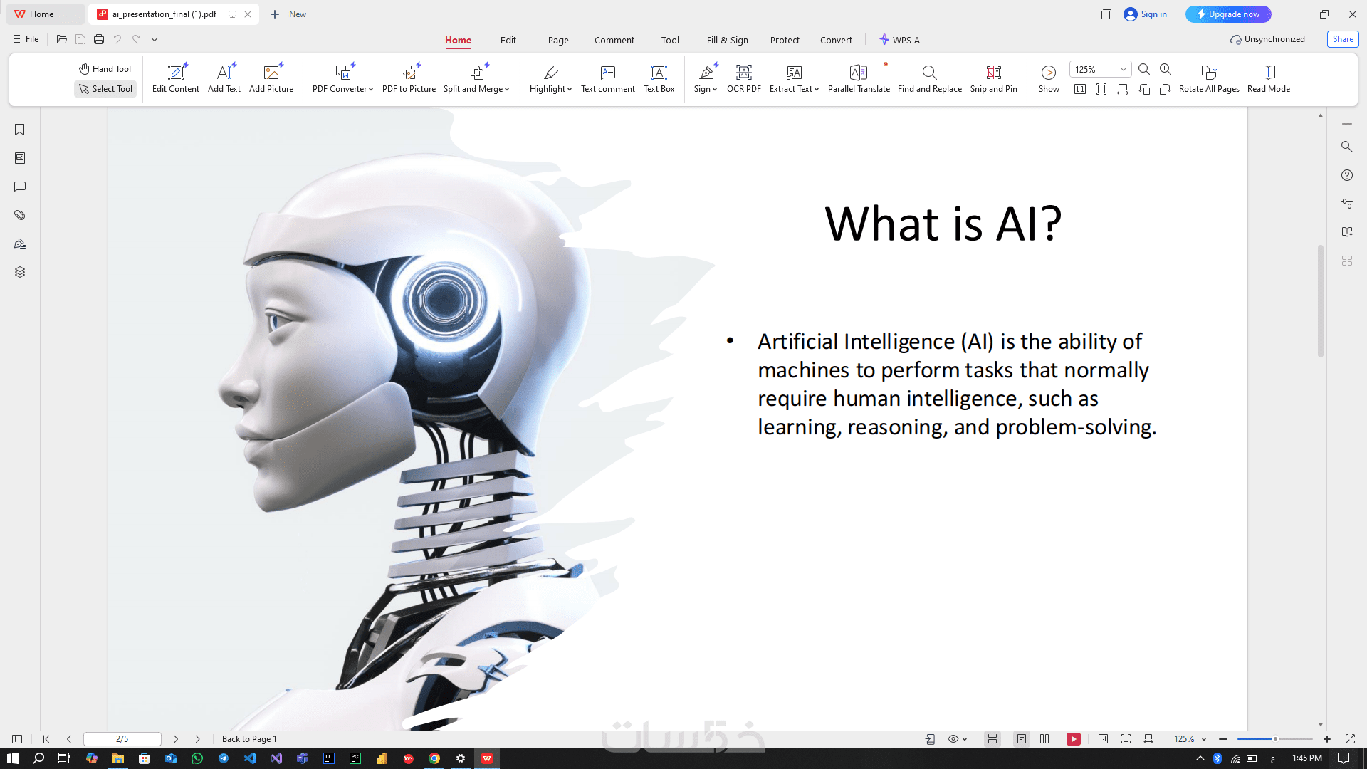 عرض بريزينتيشن بسيط عن الAIبطريقه احترافيه وجذابه من 4 ل 6 صفح علي حسب طلب العميل