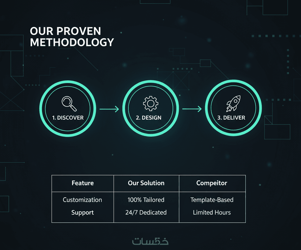 تصميم فريد يعكس هويتك البصرية (ألوان، شعار، خطوط) أو طبيعة مشروعك، بعيدًا عن القوالب الجاهزة المكررة.